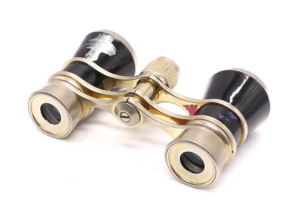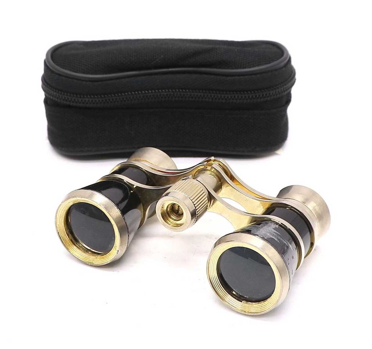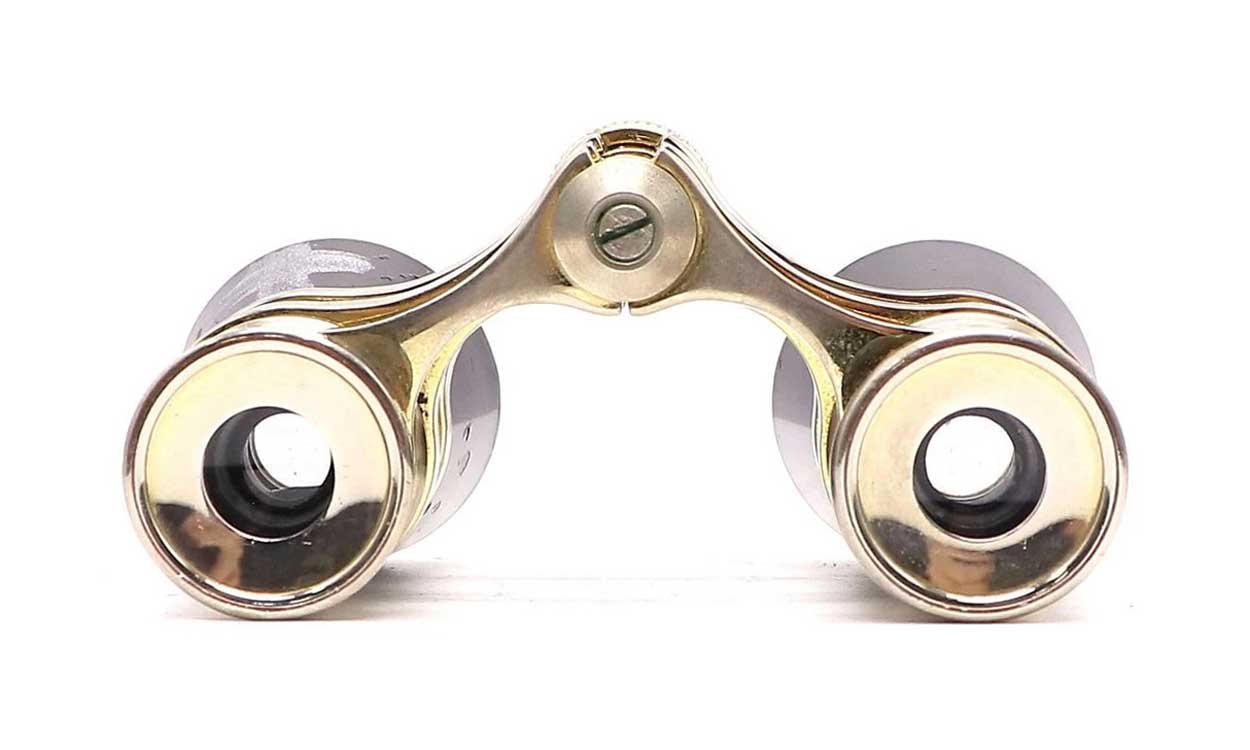 Бинокль театральный золотистый (2,5x) выпускался предположительно с 1985 года. Бинокль предназначен для наблюдения театральных, цирковых, эстрадных представлений и спортивных соревнований.