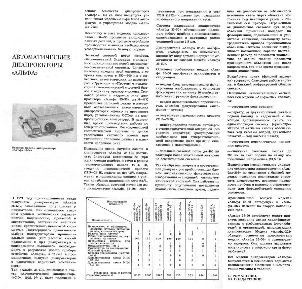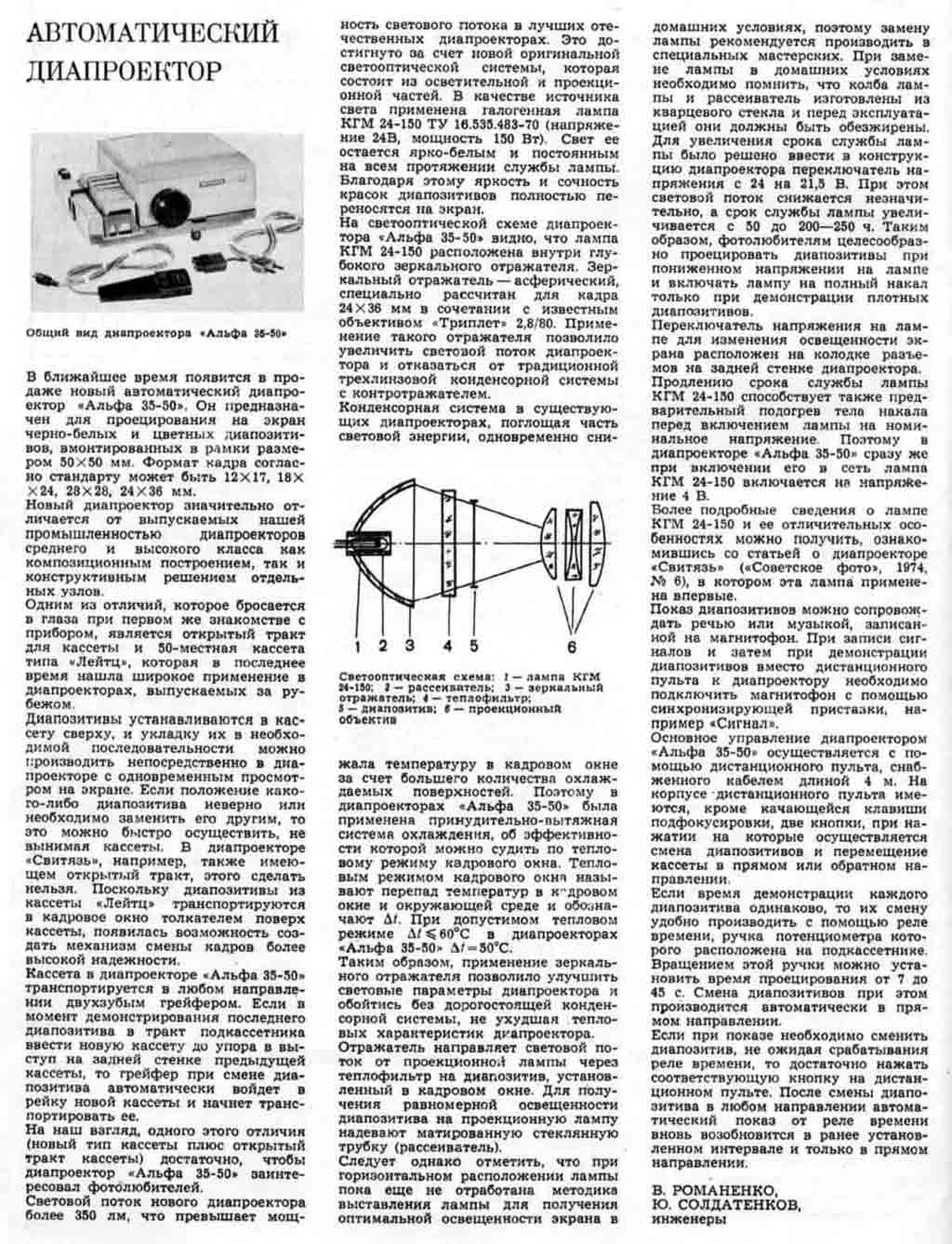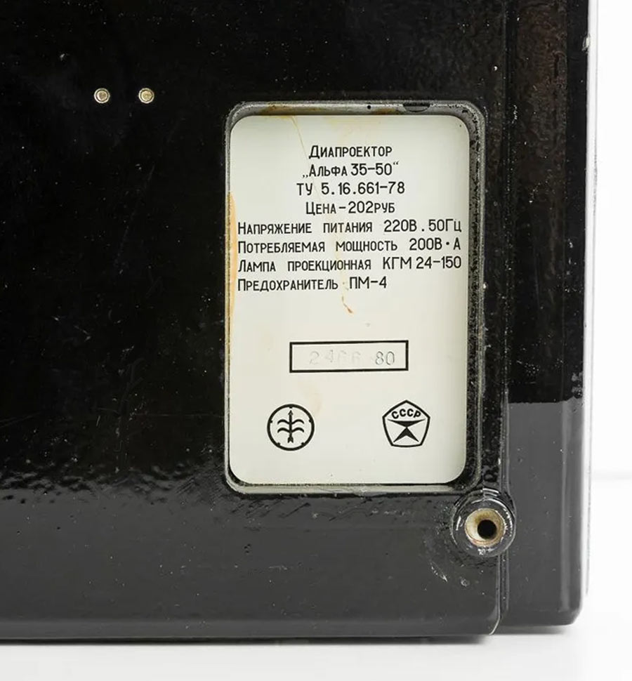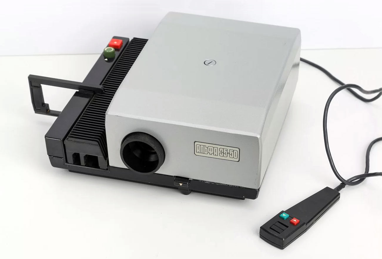 Автоматический диапроектор "Альфа-35-50" выпускался с 1975 года Киевским заводом автоматики им. Г.И. Петровского. Предназначен для демонстрации слайдов, с их автоматической сменой и фокусировкой.