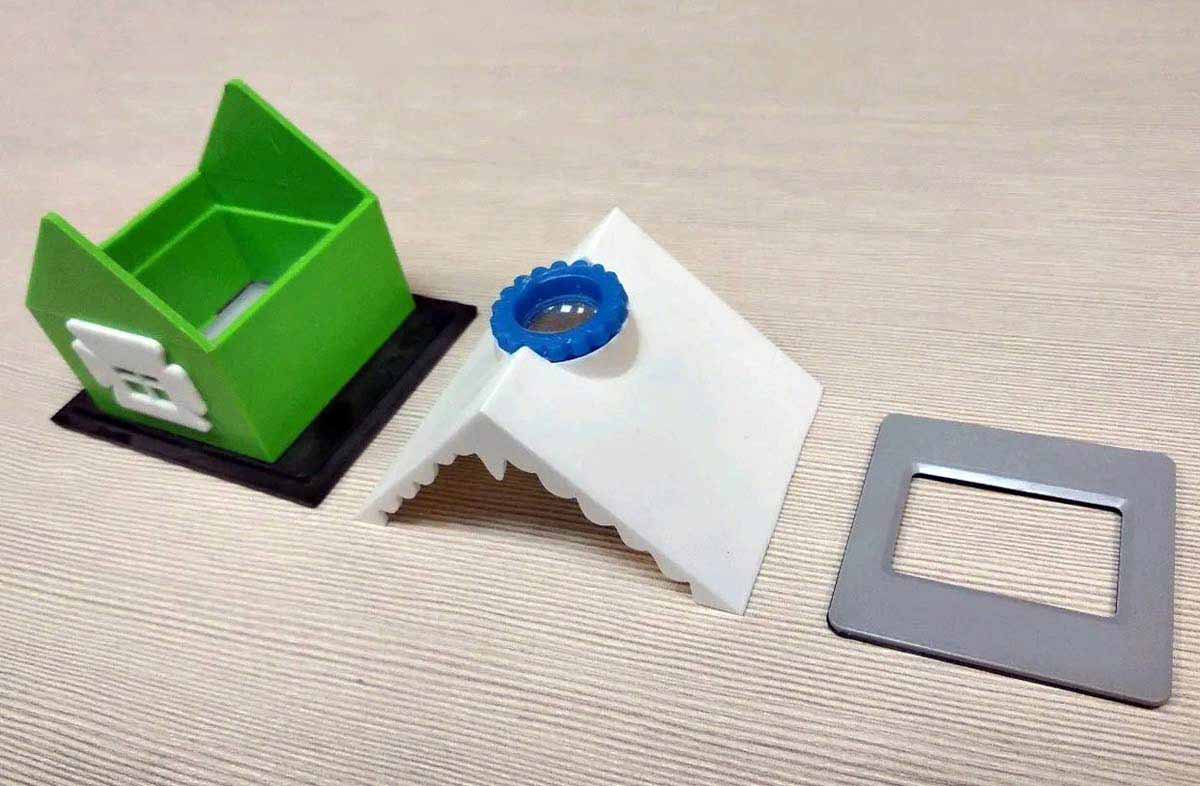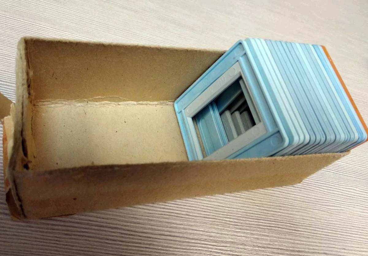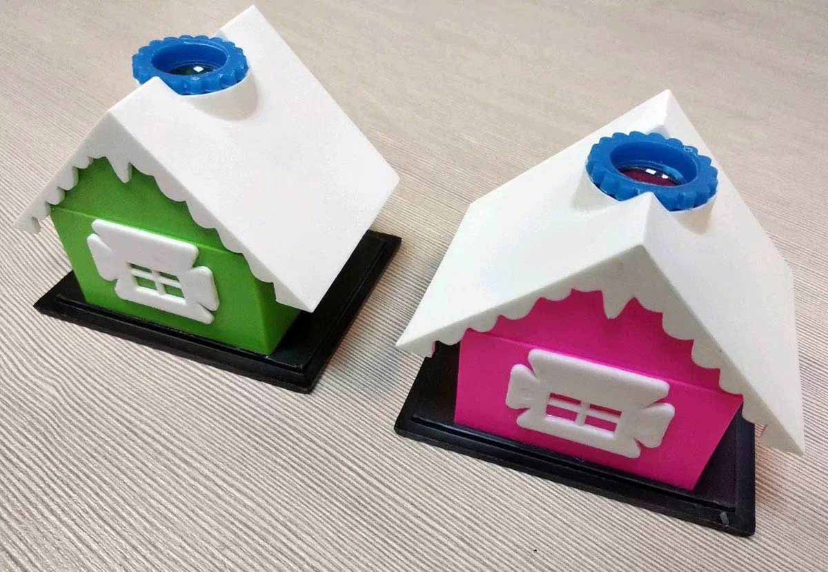 Сувенирный диаскоп "Домик" выпускался предположительно с 1981 года. Диаскоп "Домик" служит для просмотра слайдов диапозитивов размером 5 х 5 сантиметров и их увеличением однолинзовым объективом.