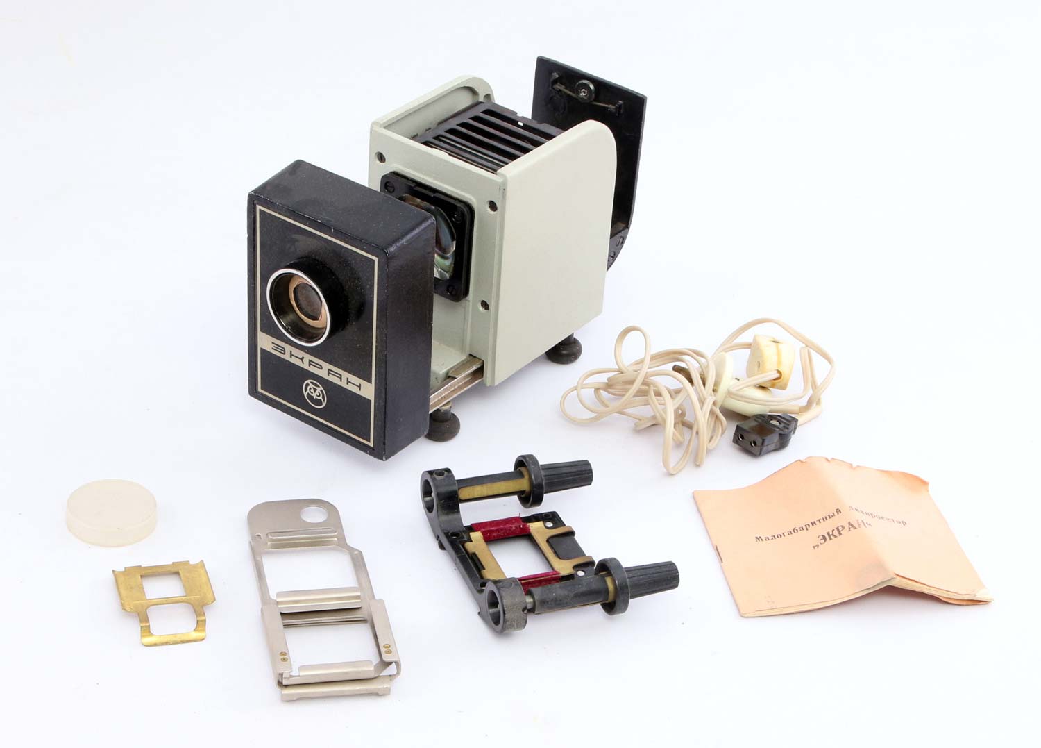 Фотографии диапроектора "Экран" с сайтов: https://diafilmy.su/ и https://www.sovtech.su/.