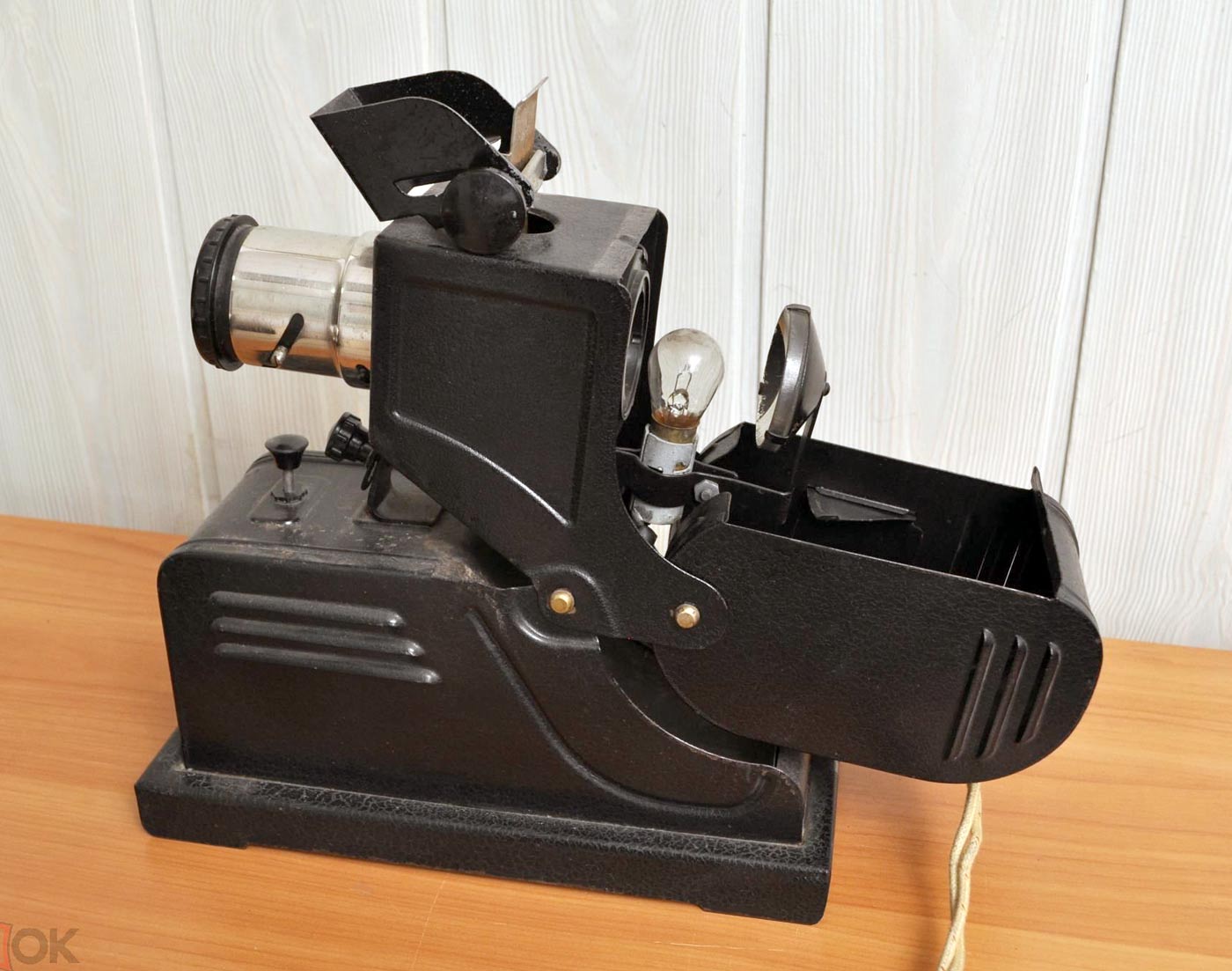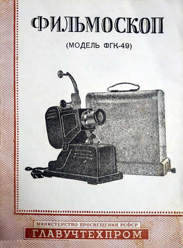 Фильмоскоп "ФГК-49" выпускался с 1949 года Загорским заводом школьного приборостроения. Предназначен для демонстрации диафильмов на 35 мм киноплёнке.