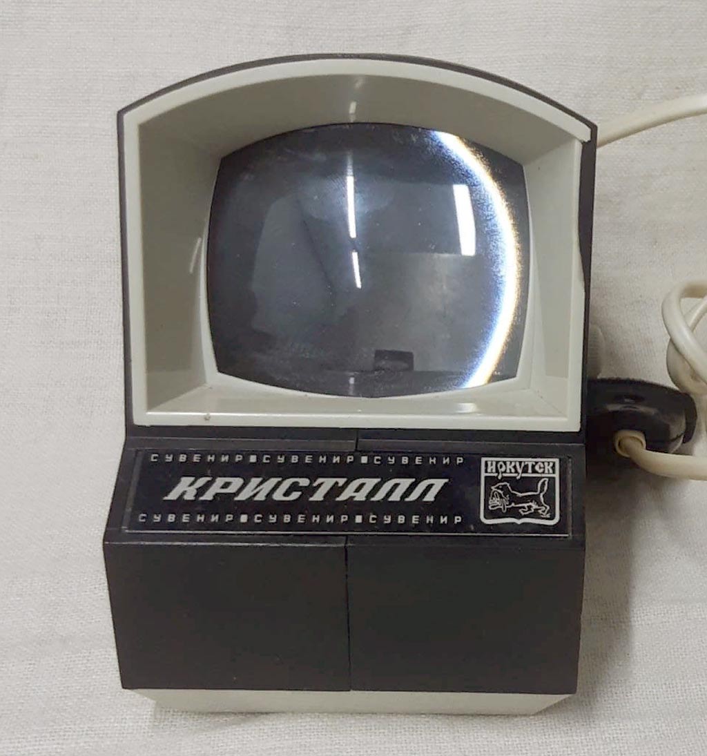 Слайдоскоп "Кристалл" выпускался возможно с 1987 года Иркутским заводом радиоприёмников имени 50-летия СССР. Служит для просмотра диапозитивов.