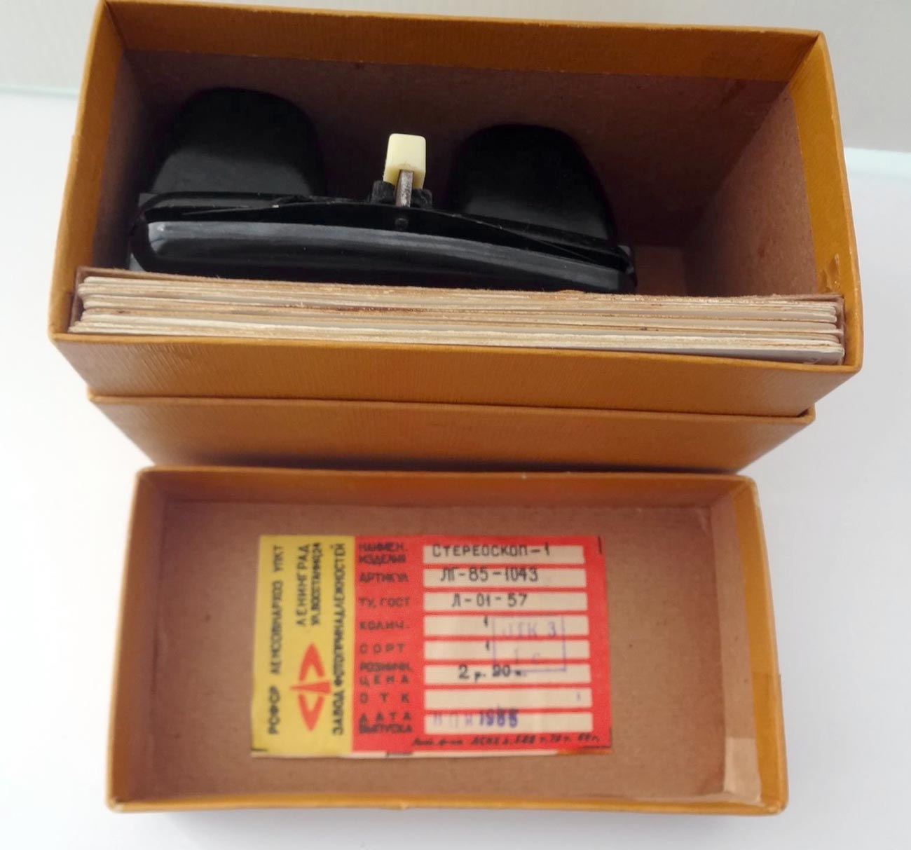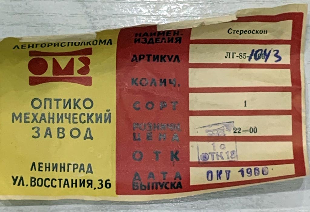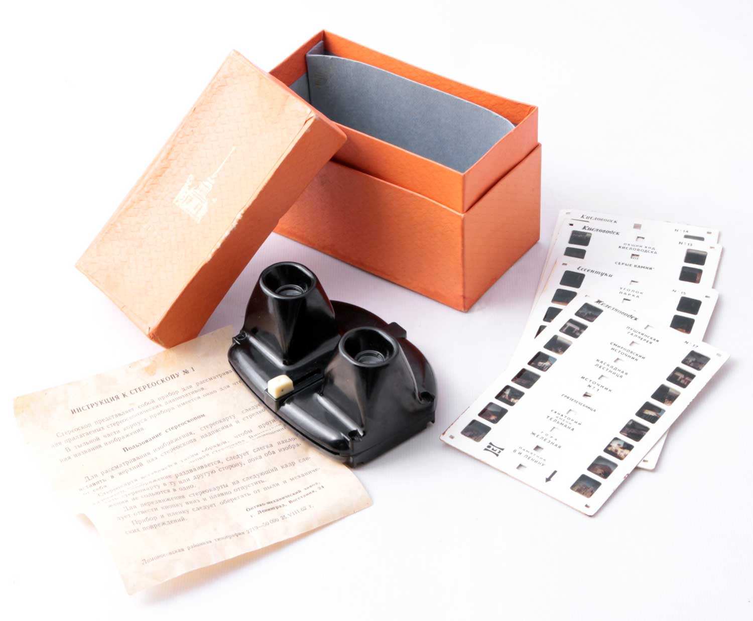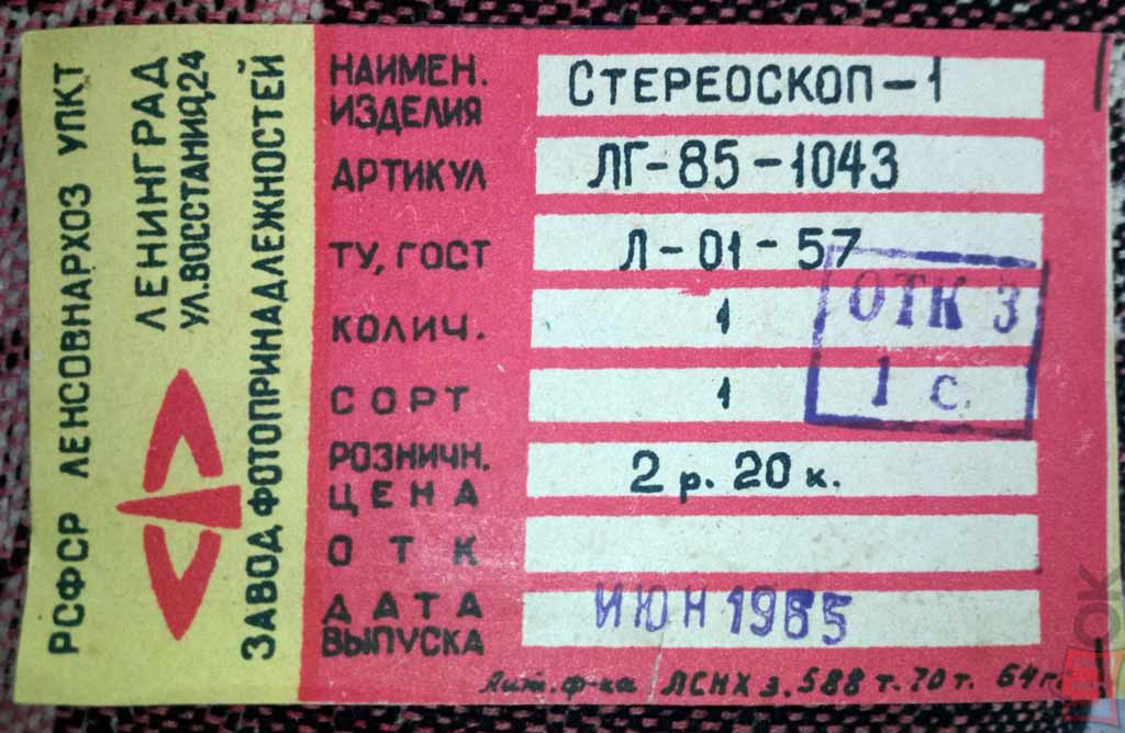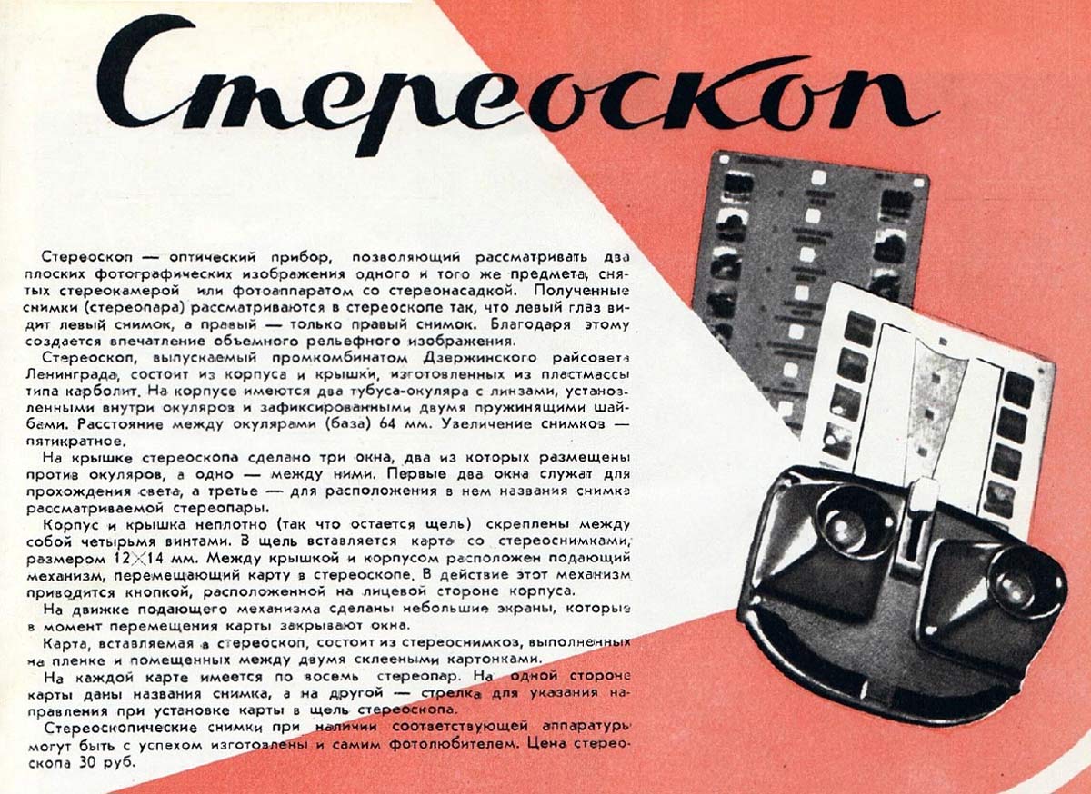 Диаскоп "Стереоскоп-1" выпускали с 1957 года в Ленинграде. Служит для просмотра стерескопических диапозитивов 12х14 мм. Базовое расстояние между окулярами 64 мм. Резкость постоянная. Увеличение 5Х.
