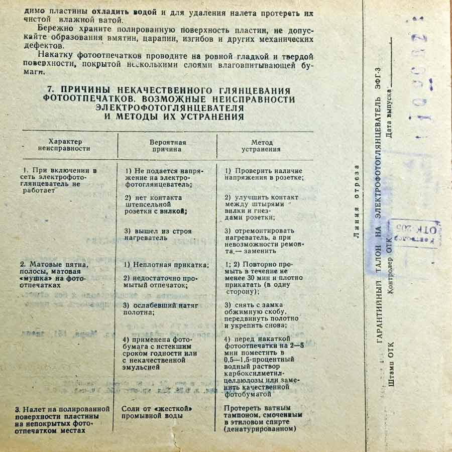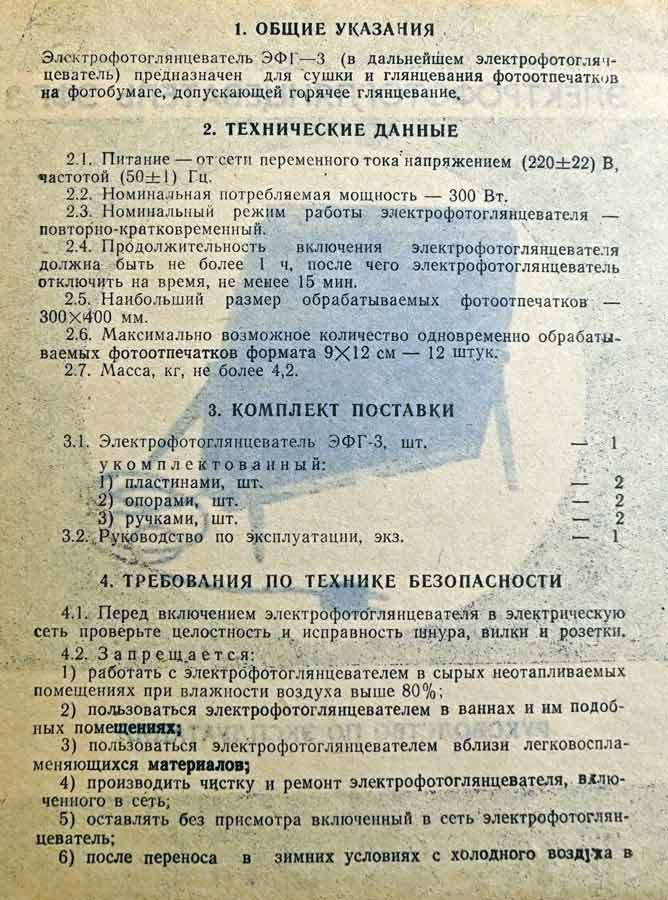 область. "ЭФГ-3" - служит для глянцевания фотографий размерами до 300 х