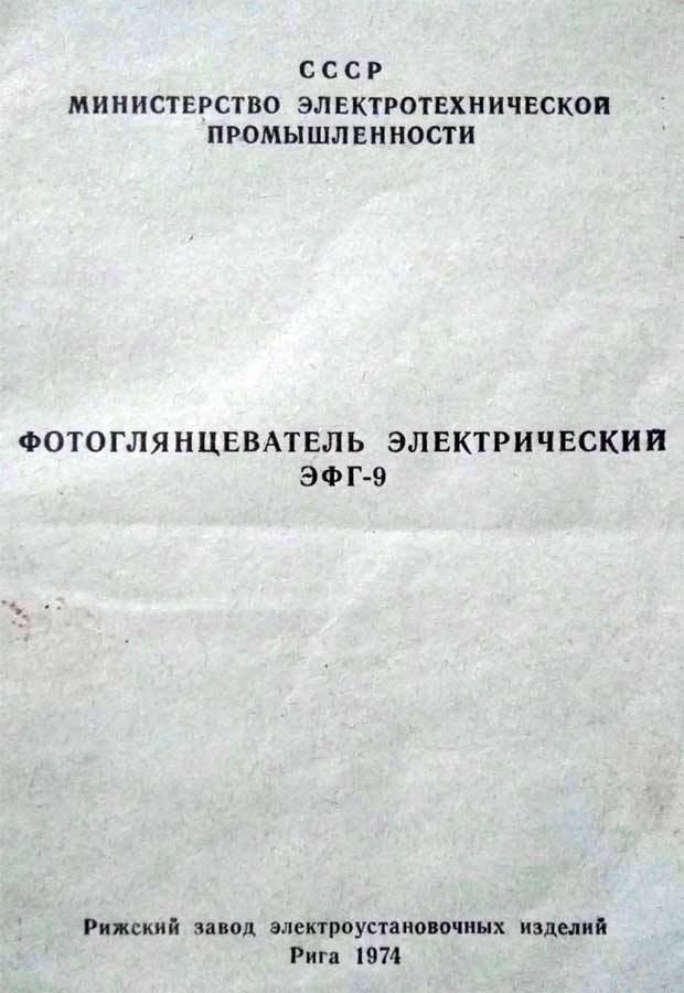 Электрический фотоглянцеватель "ЭФГ-9" производился возможно с 1972 года Рижским заводом установочных изделий, возможно и некоторыми другими заводами страны.