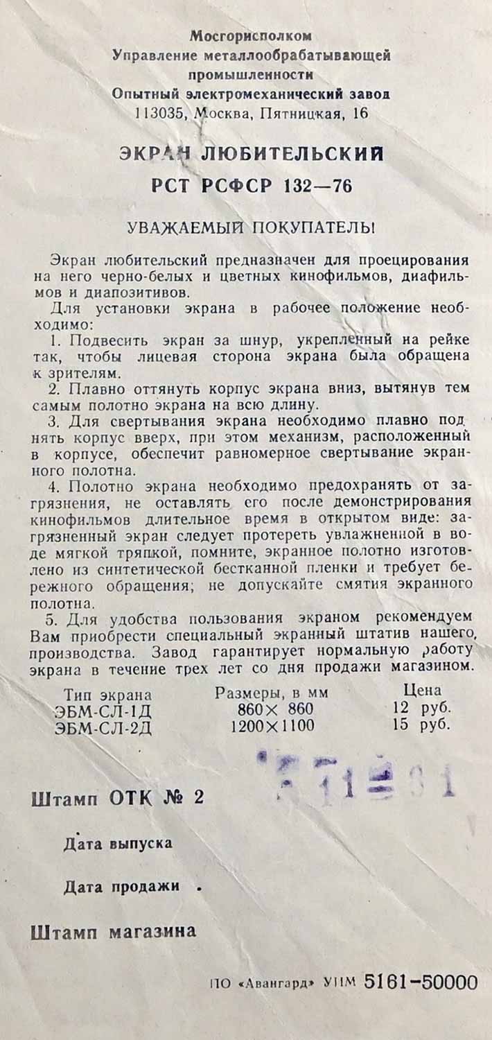 опытный электромеханический завод. Экраны предназначены для проецирования