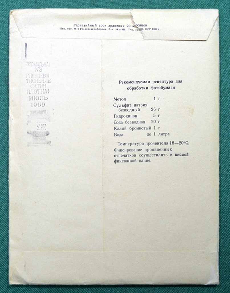 Фотобумага "Фотобром" выпускалась Ленинградской фабрикой "Динамо" предположительно с 1967 года. На фотографиях размер фотобумаги 18х24 см. Были и другие.