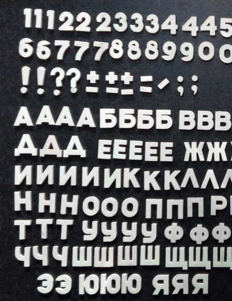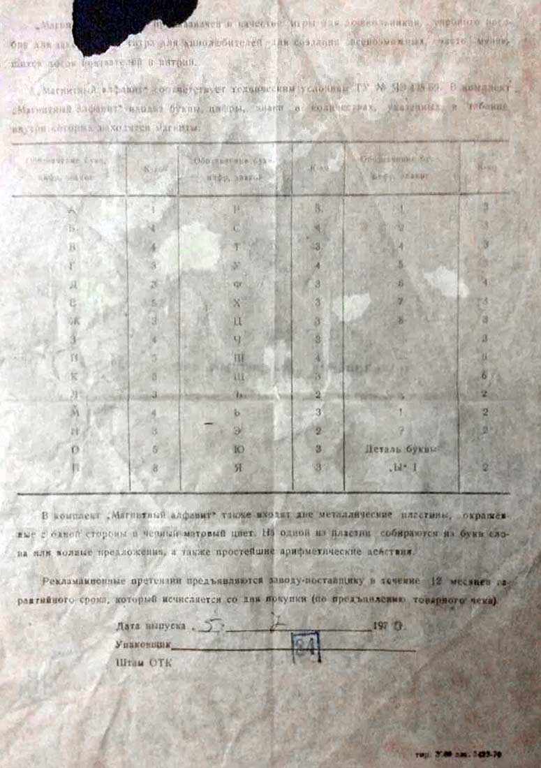 алфавит для кинолюбителей "Магнитный алфавит" выпускался с 1970 года Рыбинским
