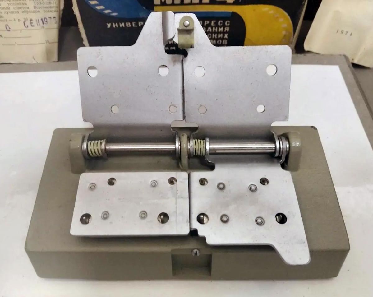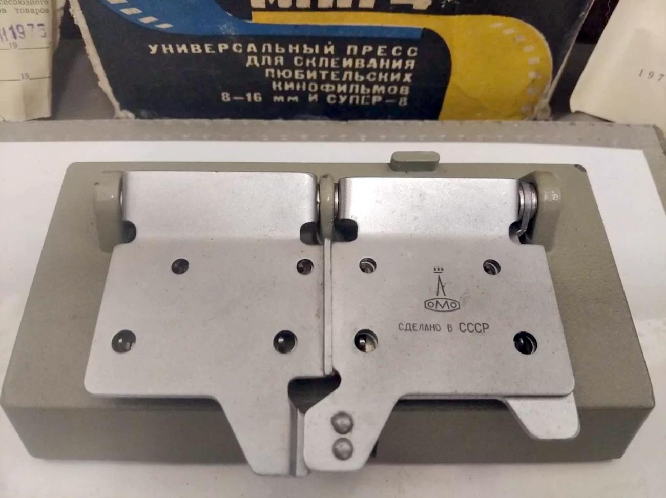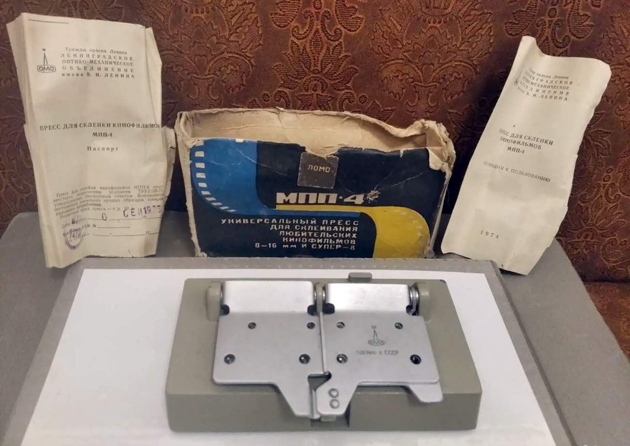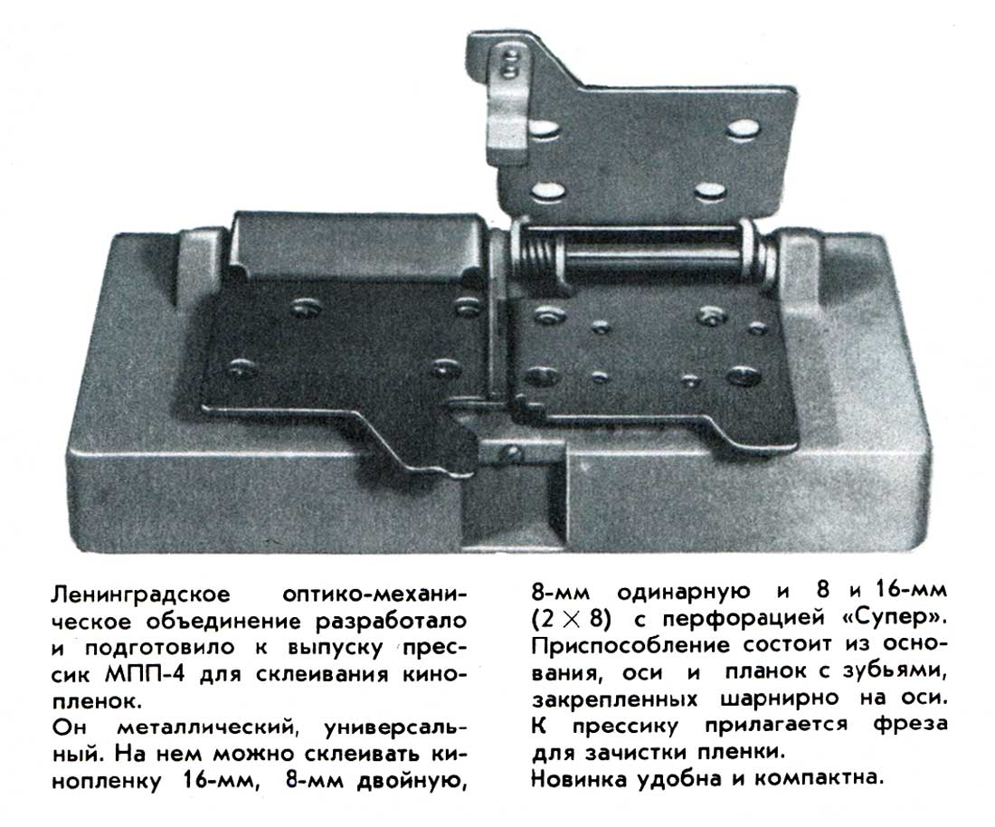Универсальный пресс для склеивания любительских кинофильмов 8 или 16 мм или Супер-8 - "МПП-4" выпускался с 1971 года Ленинградским ОМО.
