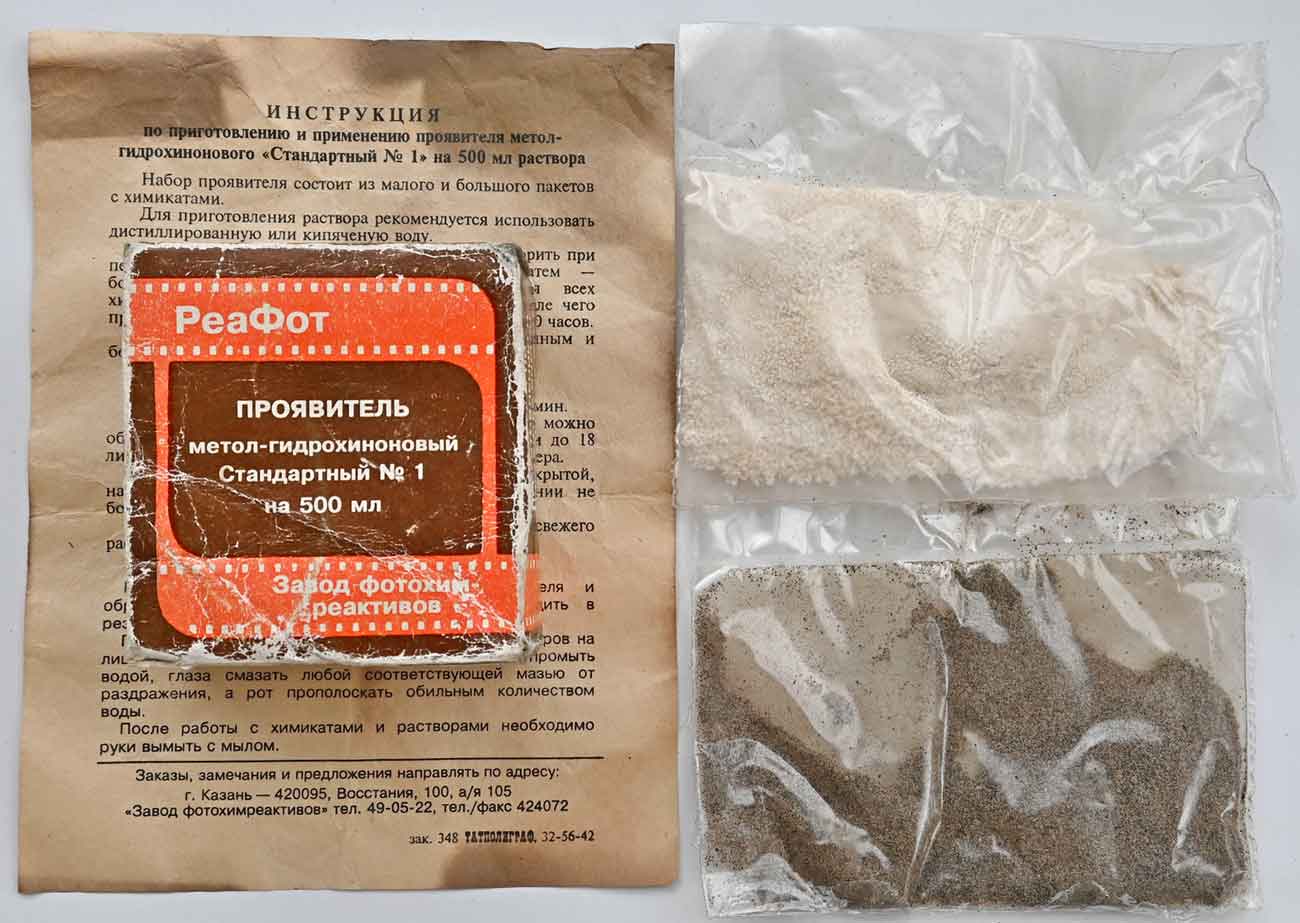 Проявитель метол-гидрохиноновый "Стандартный №1" для ч/б фотобумаг, листовых фотоплёнок и фотопластинок выпускал с 1996 года Казанский завод фотохимреактивов.