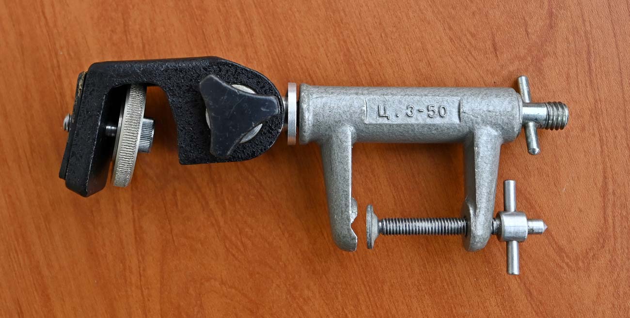 Струбцина для различных фотографических работ выпускалась предположительно с 1982 года Ленинградским ПО "Звезда". Цена 3 р. 50 к.