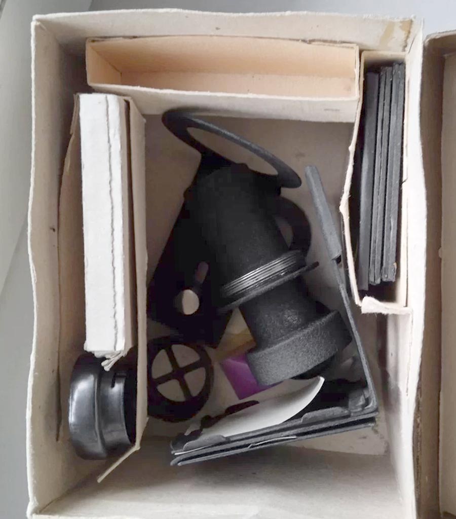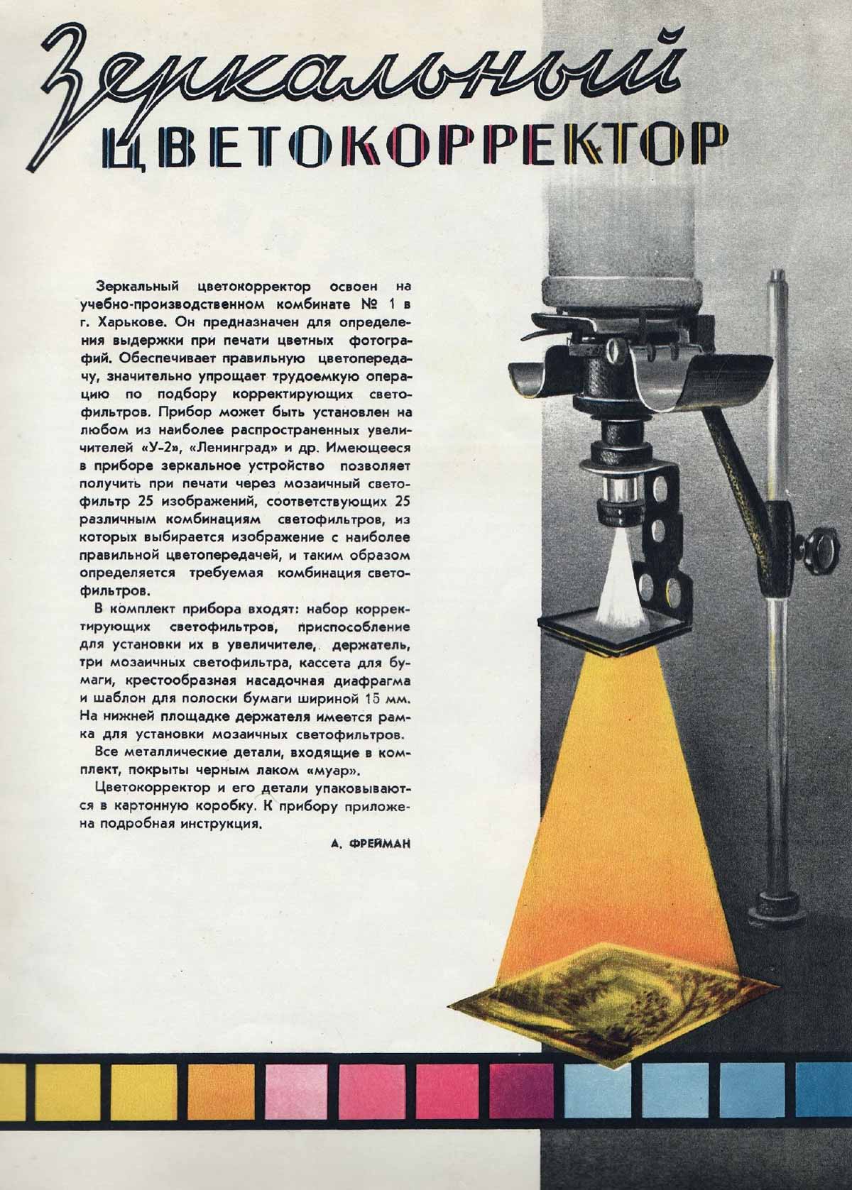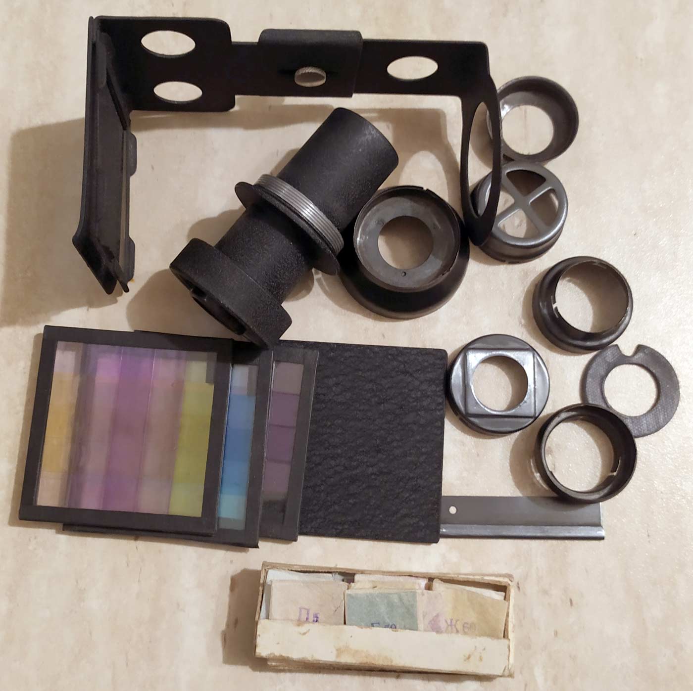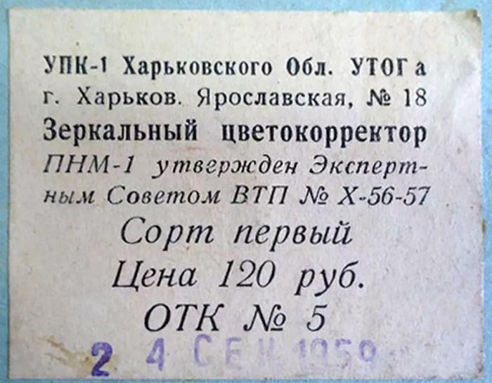 Зеркальный цветокорректор "ПНМ-1" с набором светофильтров для цветной фотографии выпускал с 1957 года Харьковский УПК-1, Украинская ССР.