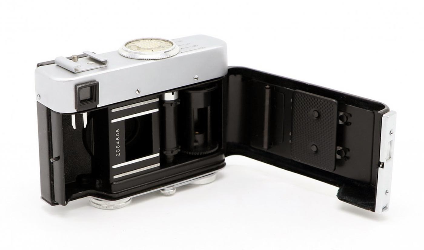 кадра -18х24 мм. Корпус камеры металлический, с откидной задней стенкой.