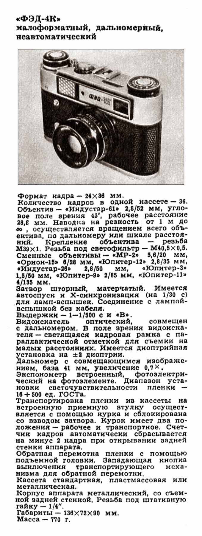 по эксплуатации фотоаппарата "ФЭД-4". Описание фотоаппарата "ФЭД-4"