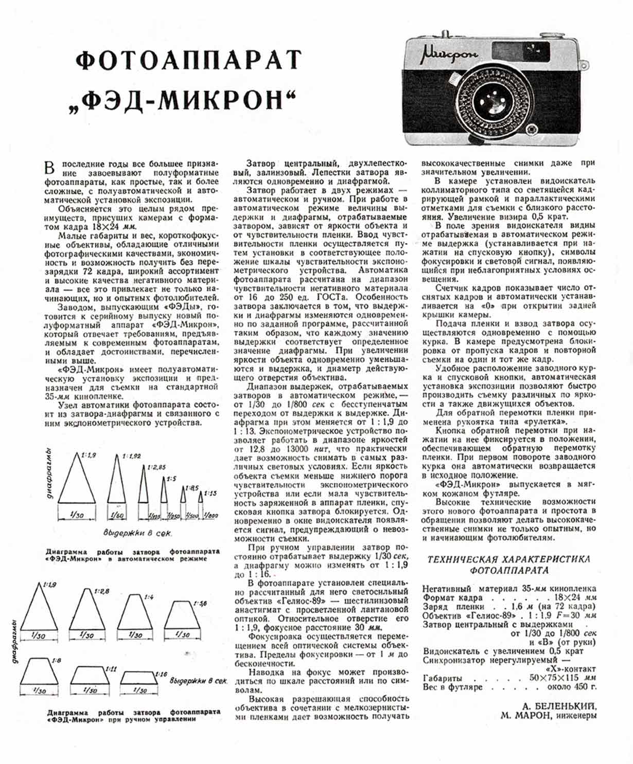 Фотоаппарат "ФЭД-Микрон" с 1968 года выпускал Харьковский машиностроительный завод "ФЭД".