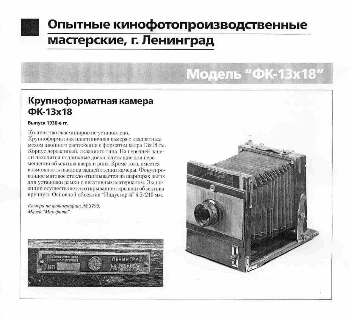 Крупноформатная камера "ФК-13х18" выпускалась возможно с 1933 года в Ленинграде.
