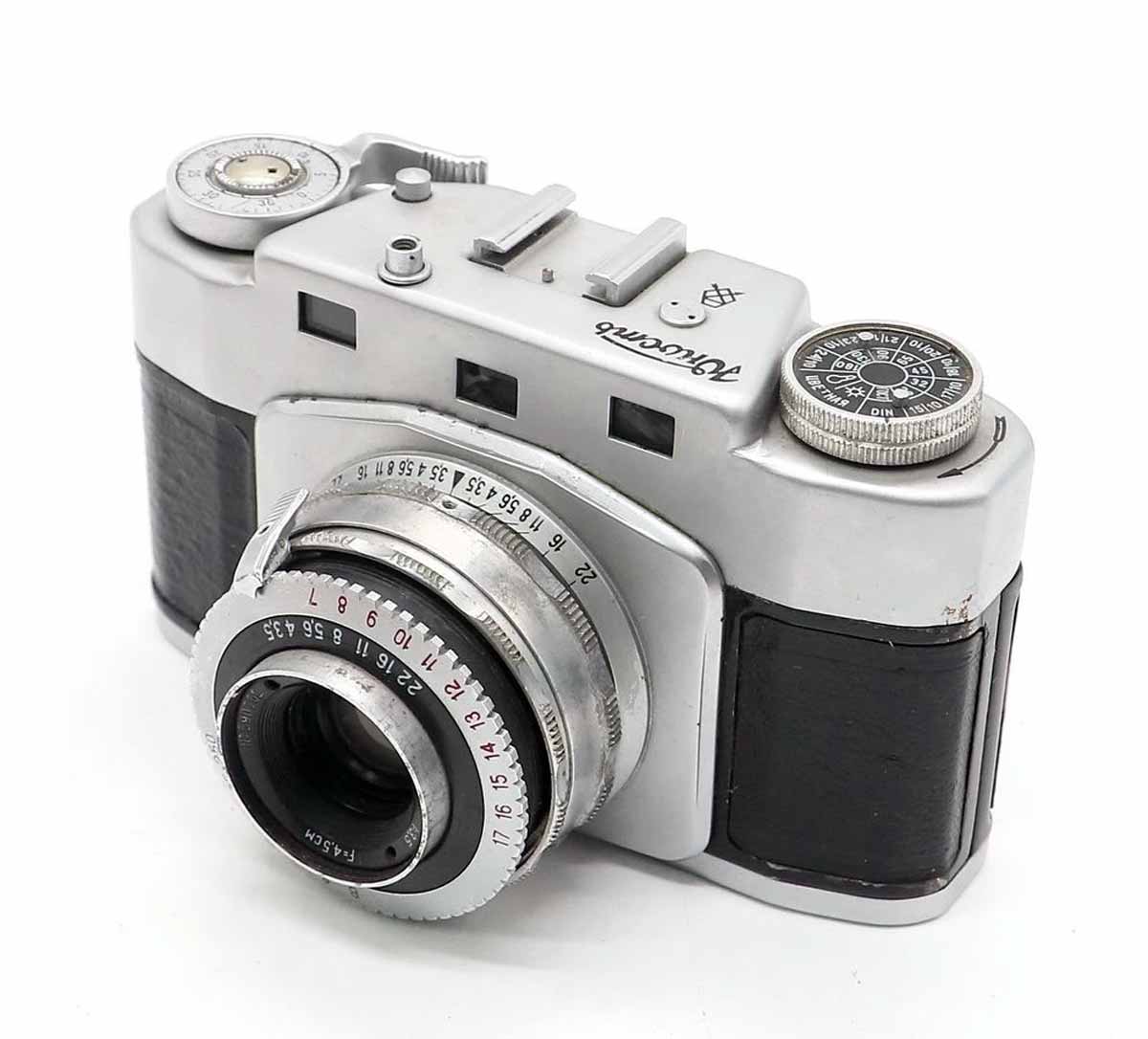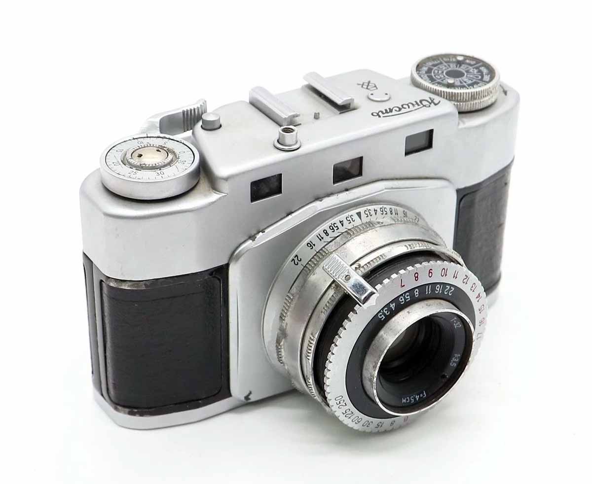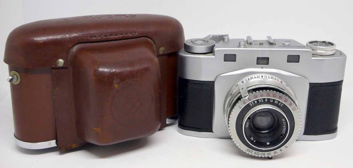 с дальномером. Фотоаппарат снабжён двумя кассетами, рассчитанными для пленки