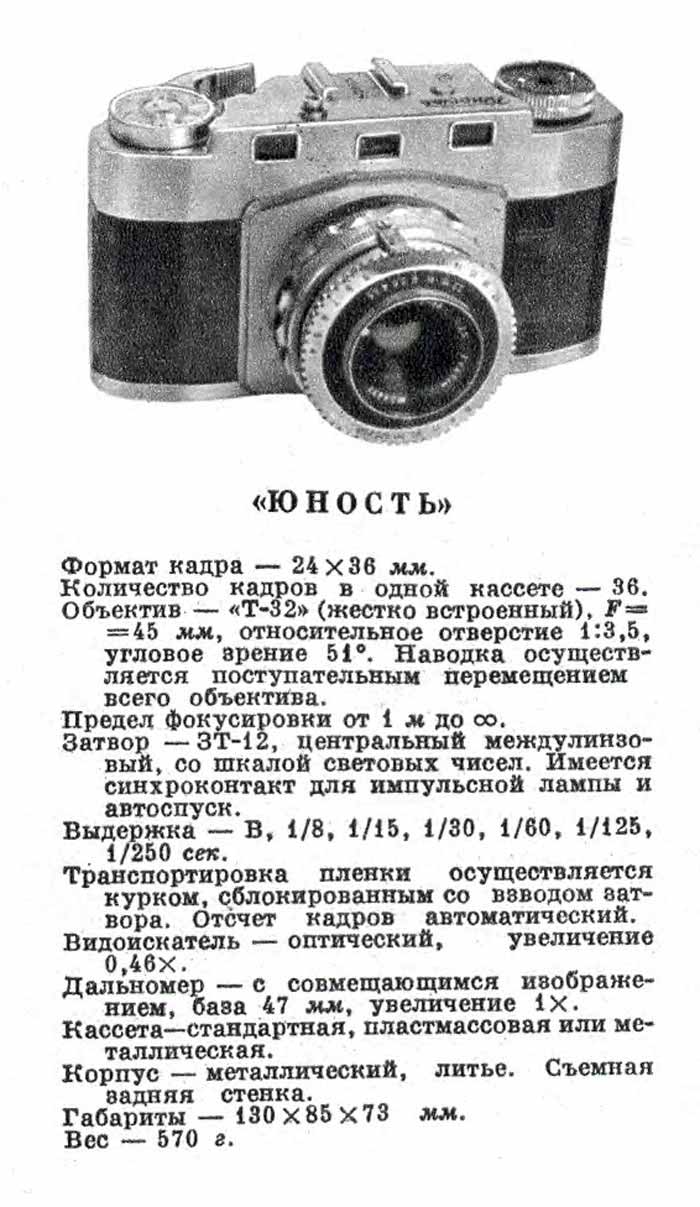 Малоформатный фотоаппарат "Юность"