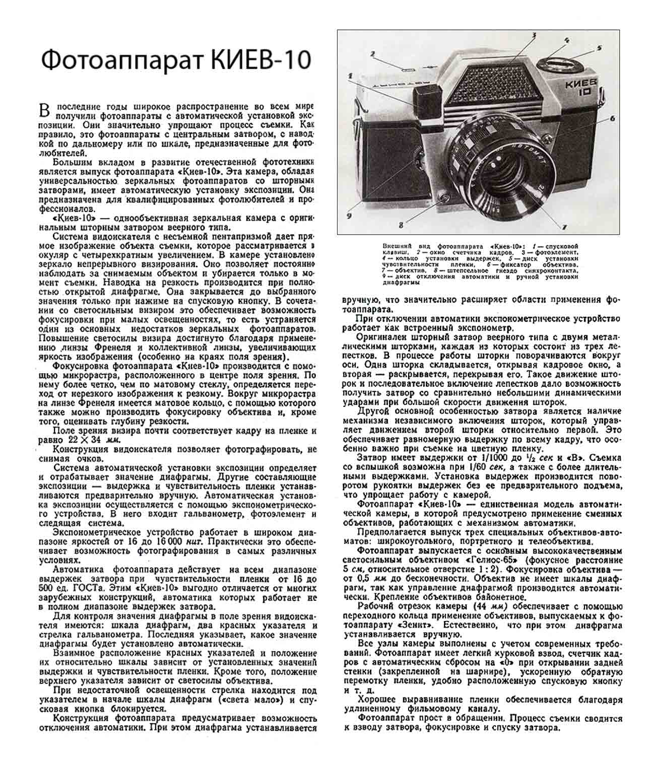 Фотоаппарат "Киев-10" выпускался с 1965 по 1974 годы Киевским заводом "Арсенал".