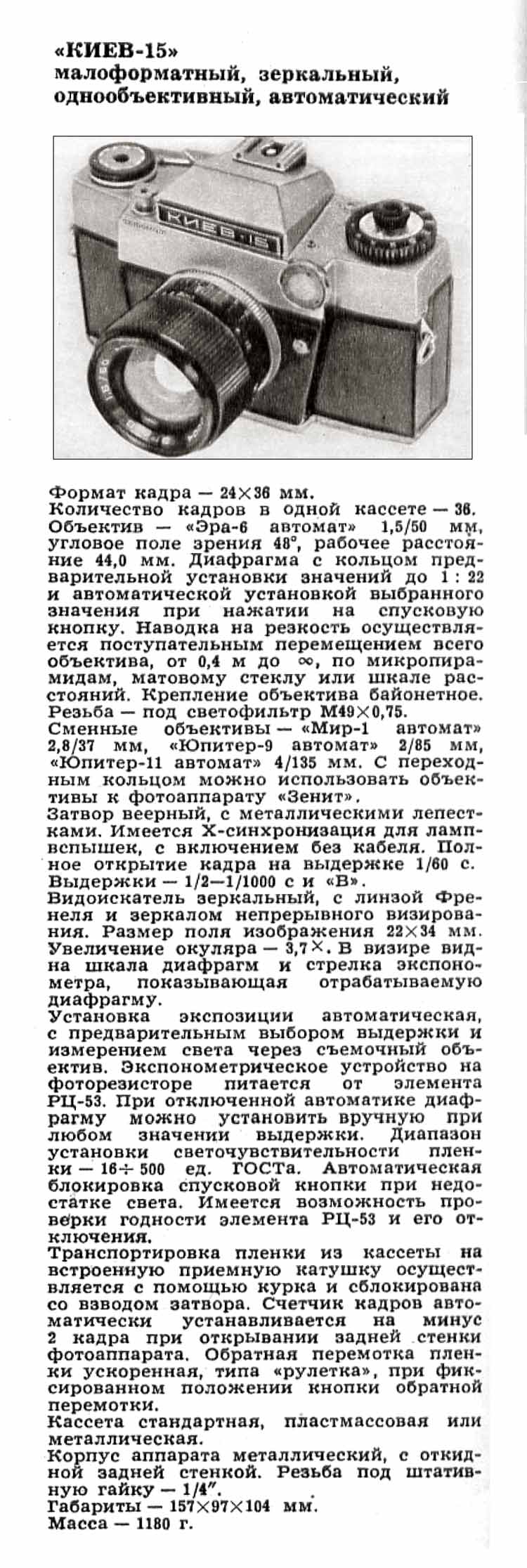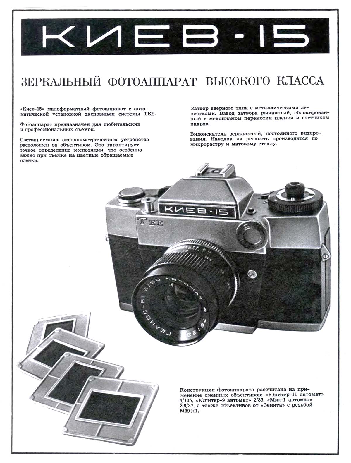 выпускал фотоаппарат "Киев-15 TTL" с однодиапазонным режимом автоматического