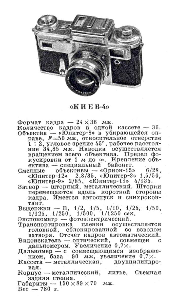 "Киев-4" выпускался с 1957 по 1980 годы на Киевском заводе "Арсенал".
