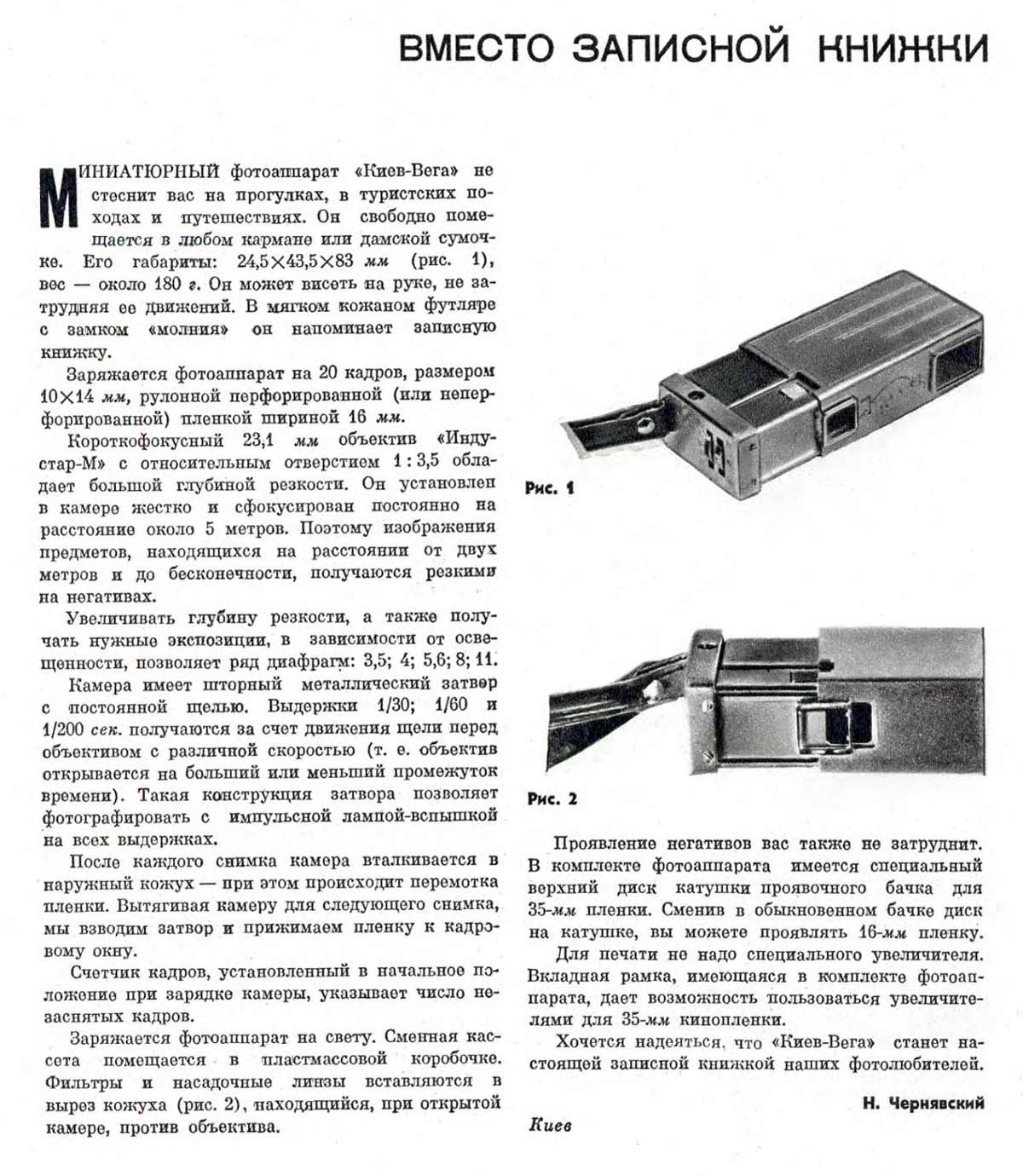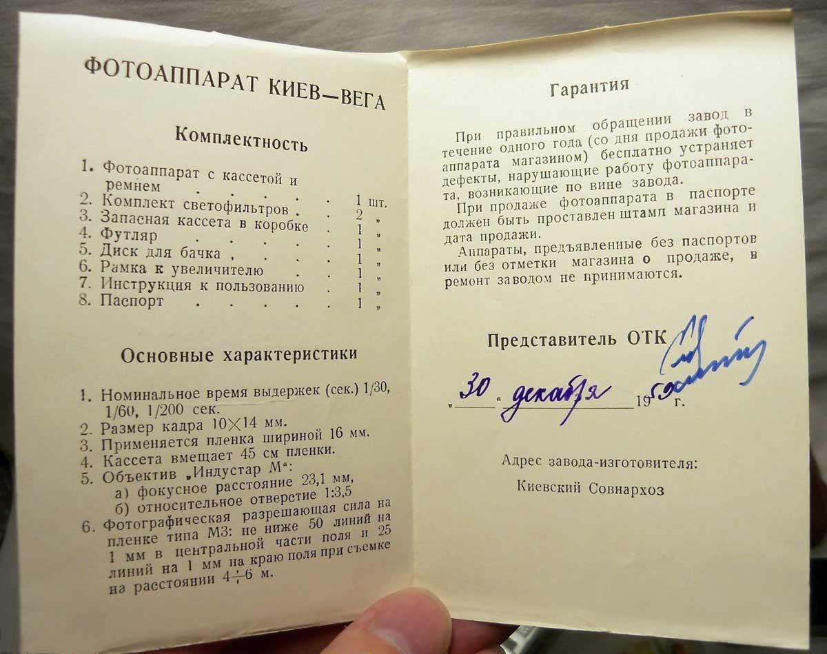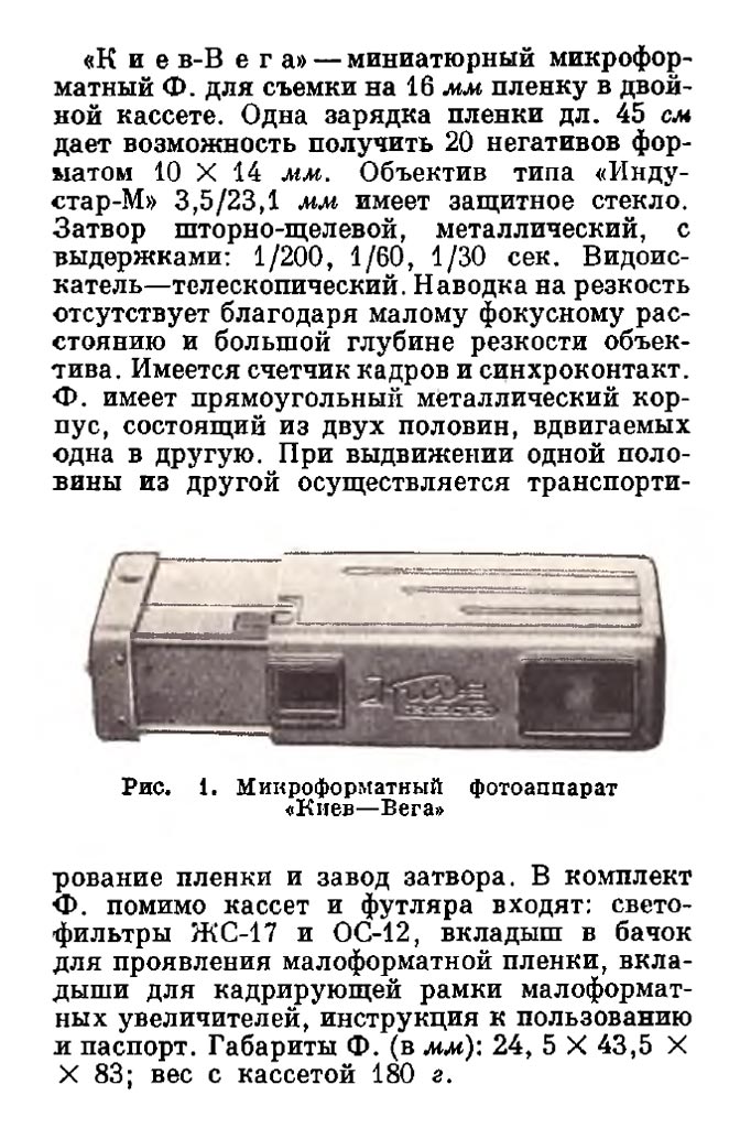 по эксплуатации фотоаппарата "Киев-Вега".