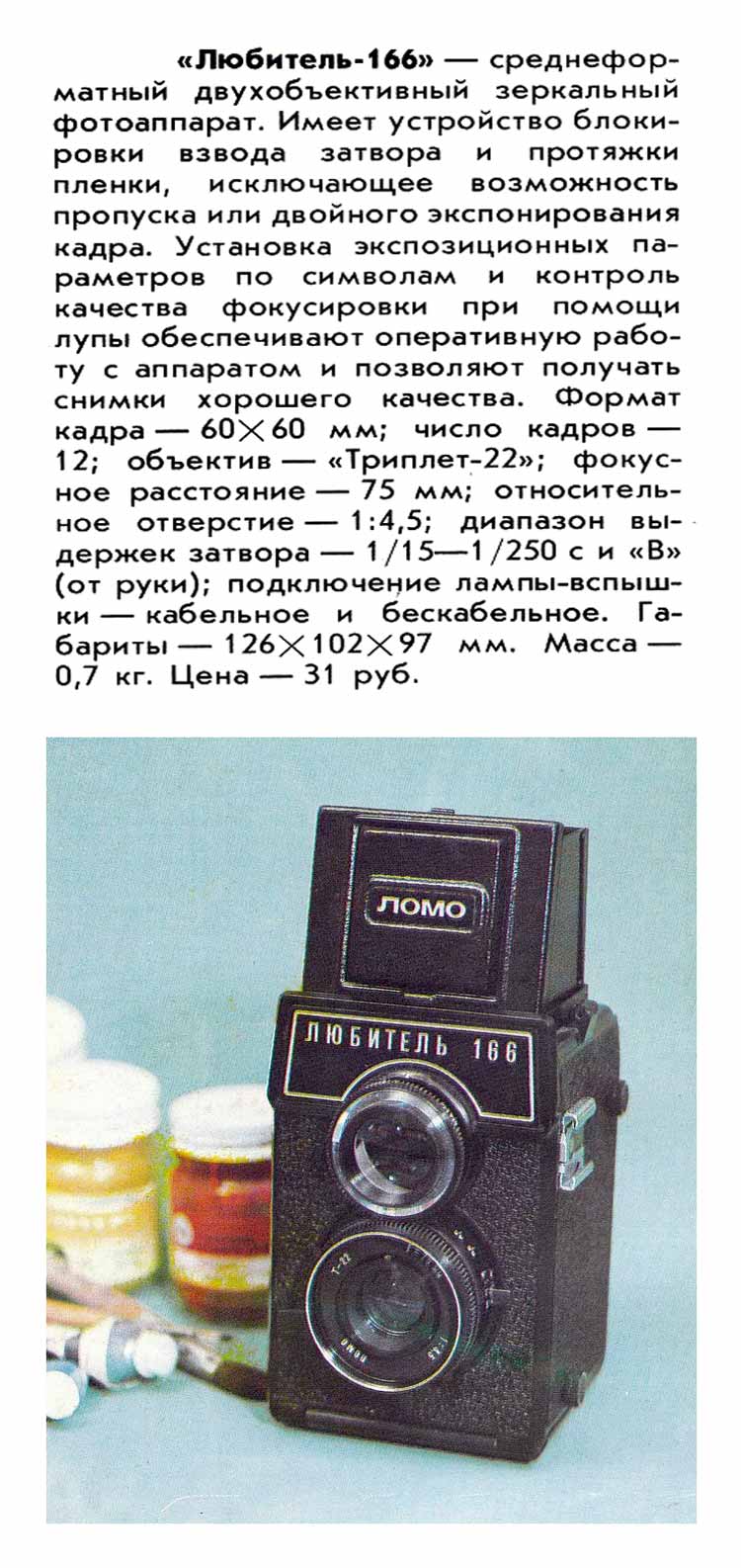 камеры "Любитель-166-универсал" 1992 года. Сканы из книги "1200