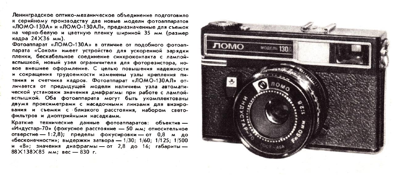 оптико-механическое объединение (ЛОМО). Фотоаппарат "ЛОМО-130А" мало отличается