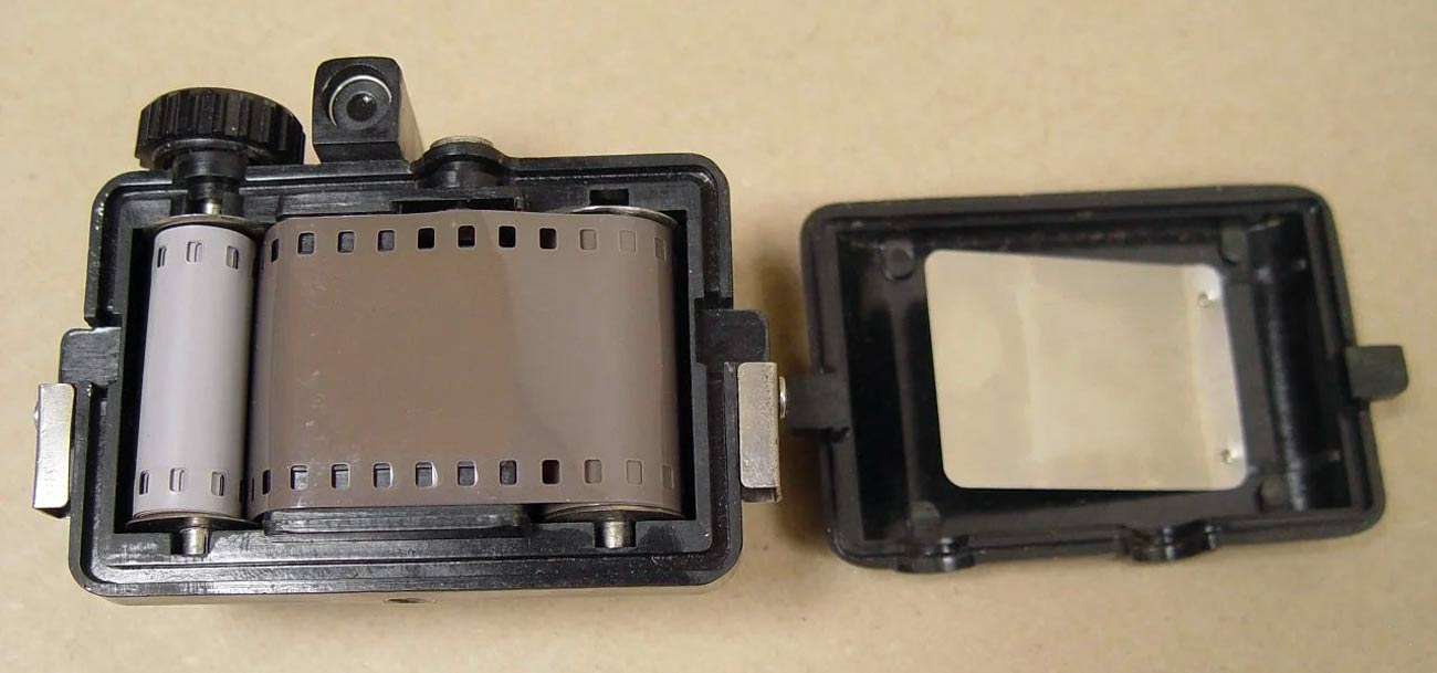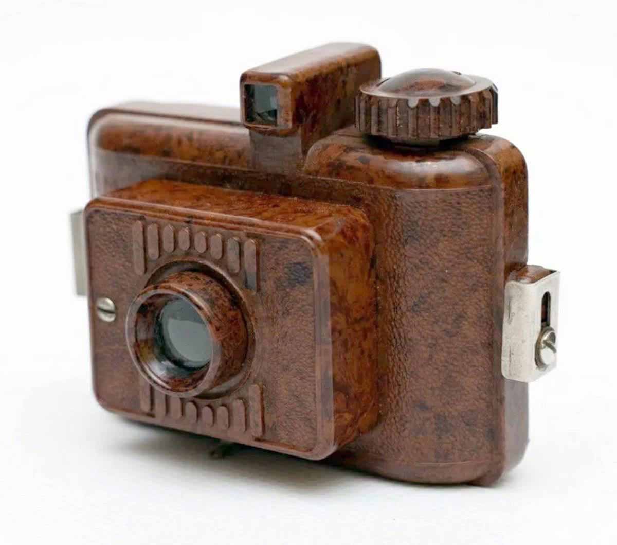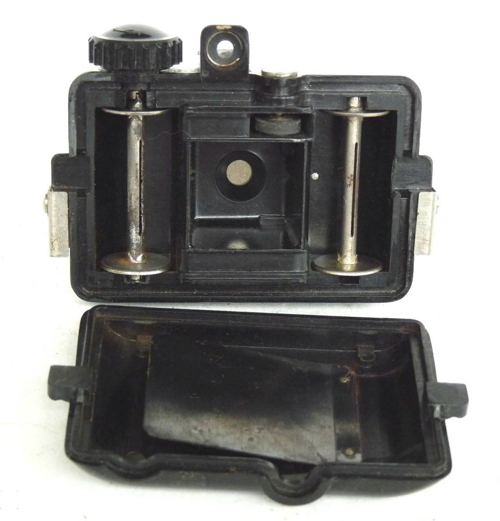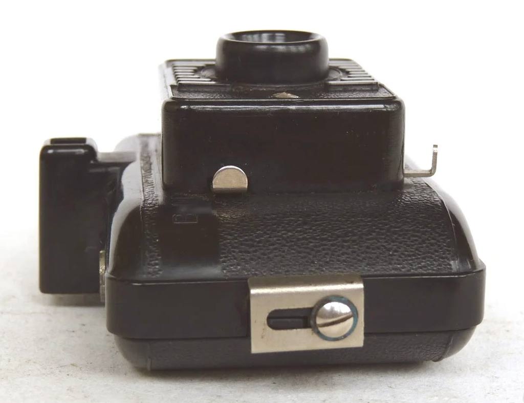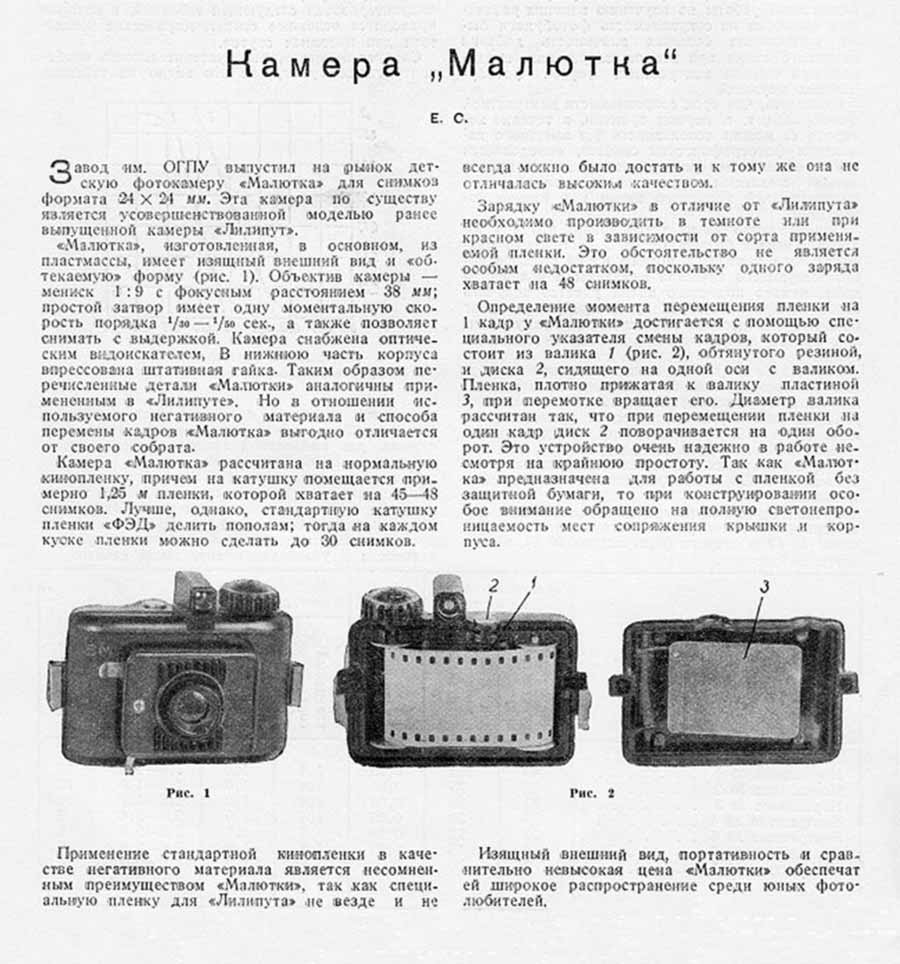 "Лилипут". Размер кадра на 35 мм плёнке 24х24 мм. Видоискатель оптический.