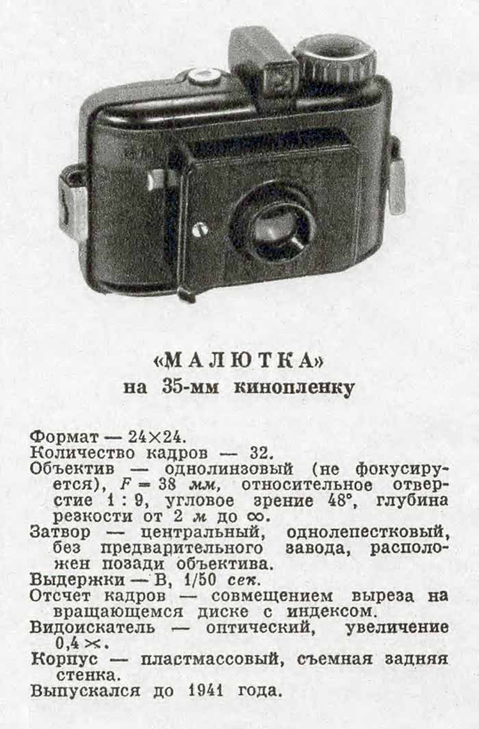 с 1940 года Ленинградским ГОМЗ. Камера "Малютка" улучшенная версия фотоаппарата