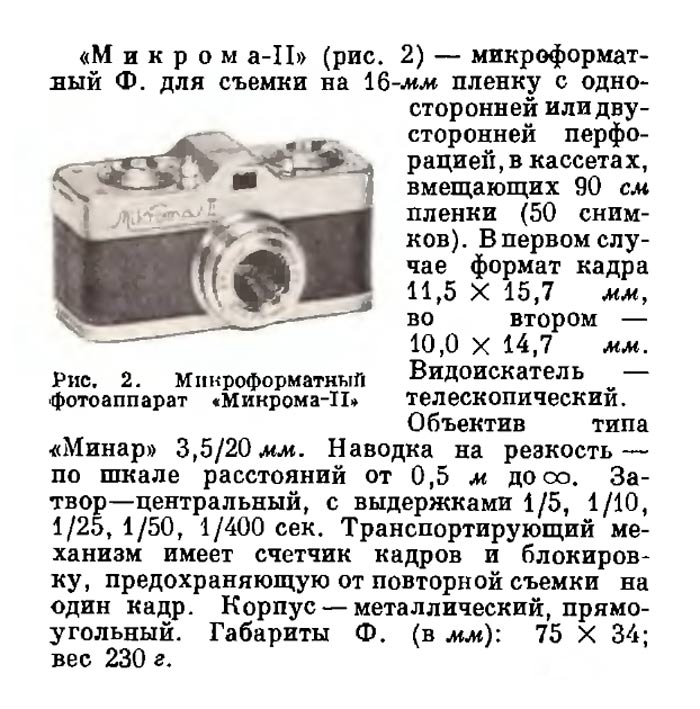 "Микрома-II" предназначен для фотосъёмки на 16-мм плёнку с односторонней