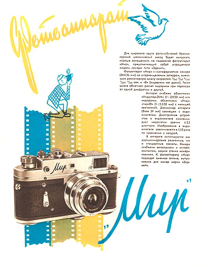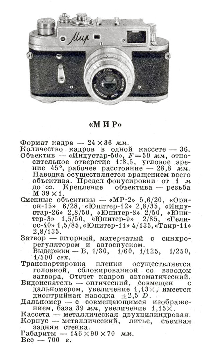 и относительным отверстием 1:3,5 и 1:2,8. Видоискатель и дальномер, механически