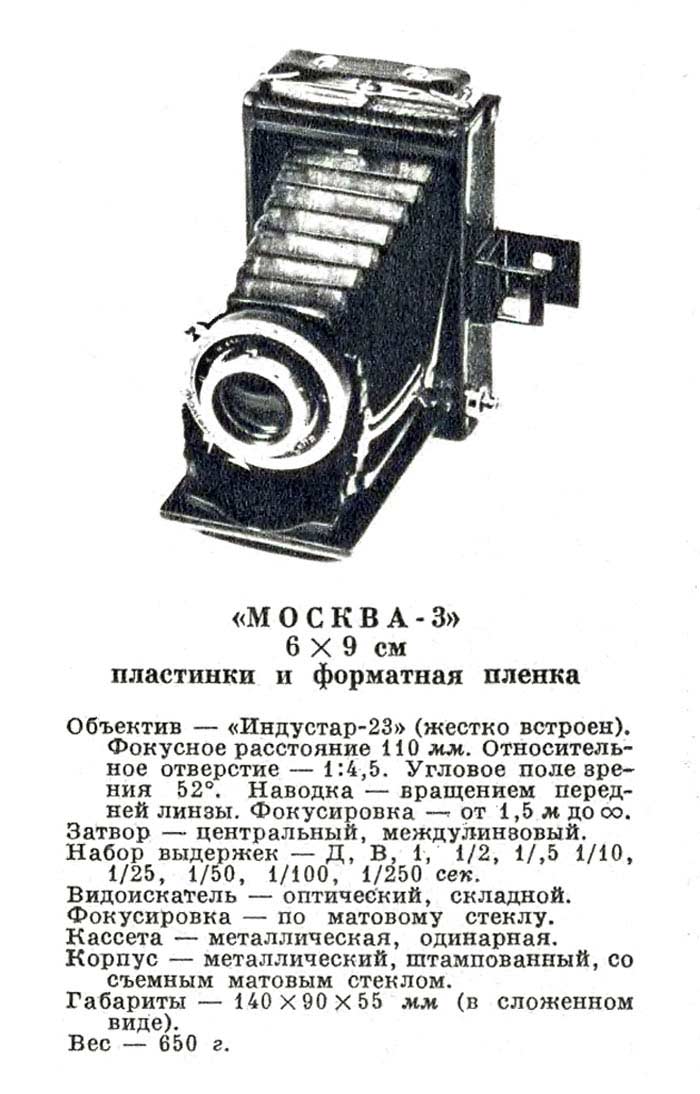 рассчитан на фотопластинки с размером кадра 6,5 х 9 см. Было 3 модификации