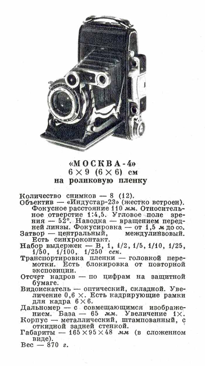Фотоаппарат "Москва-4" с 1955 по 1958