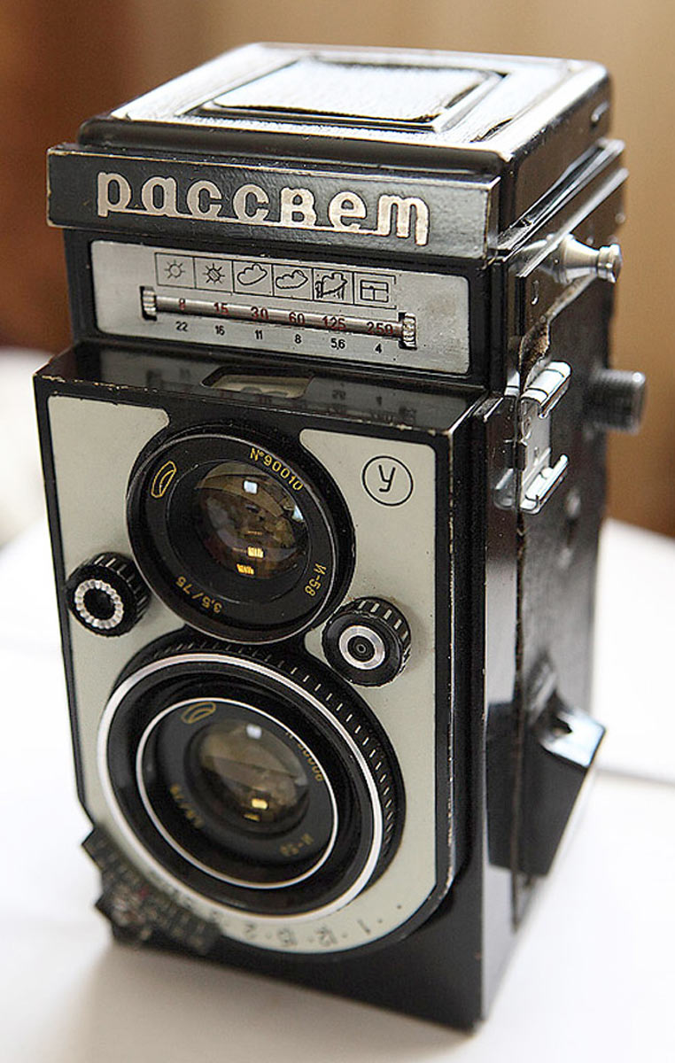 двухобъективный полуавтоматический фотоаппарат "Рассвет" предназначен для