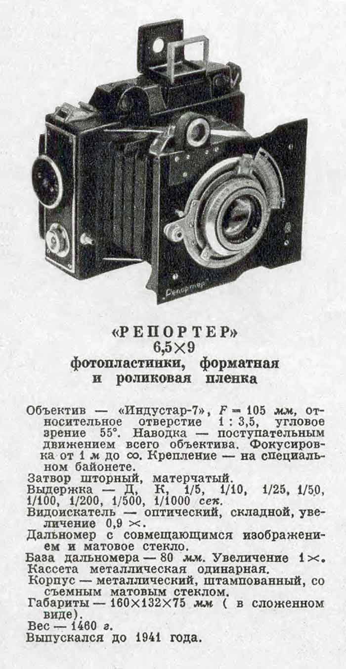 дальномерная камера "Репортёр" выпускалась с 1937 по 1940 годы на Ленинградском