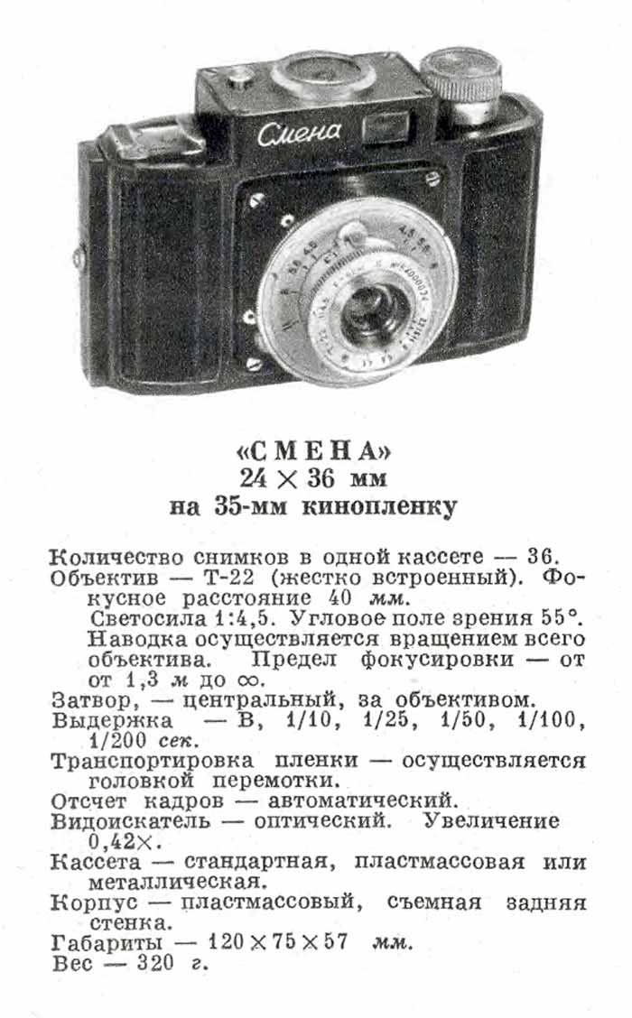 по эксплуатации фотоаппарата "Смена".