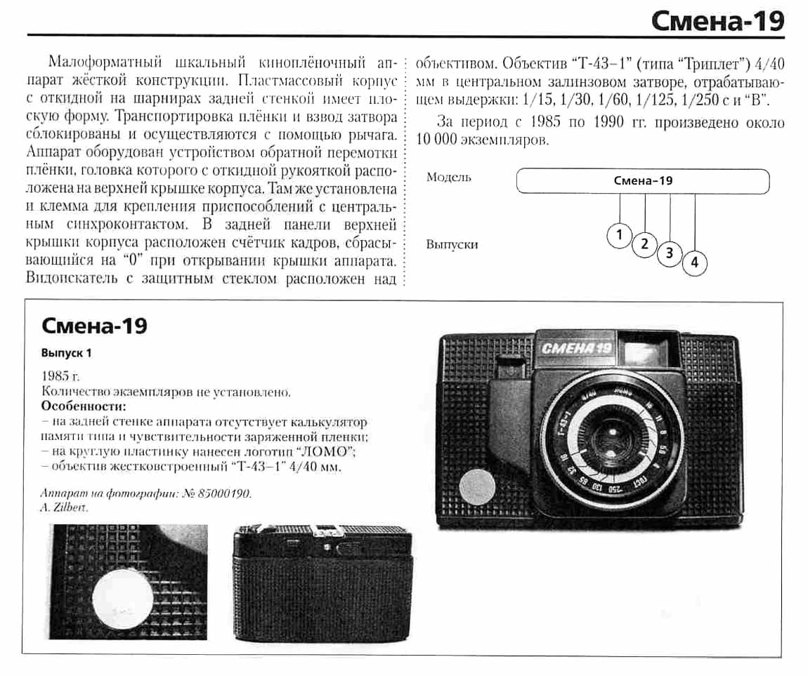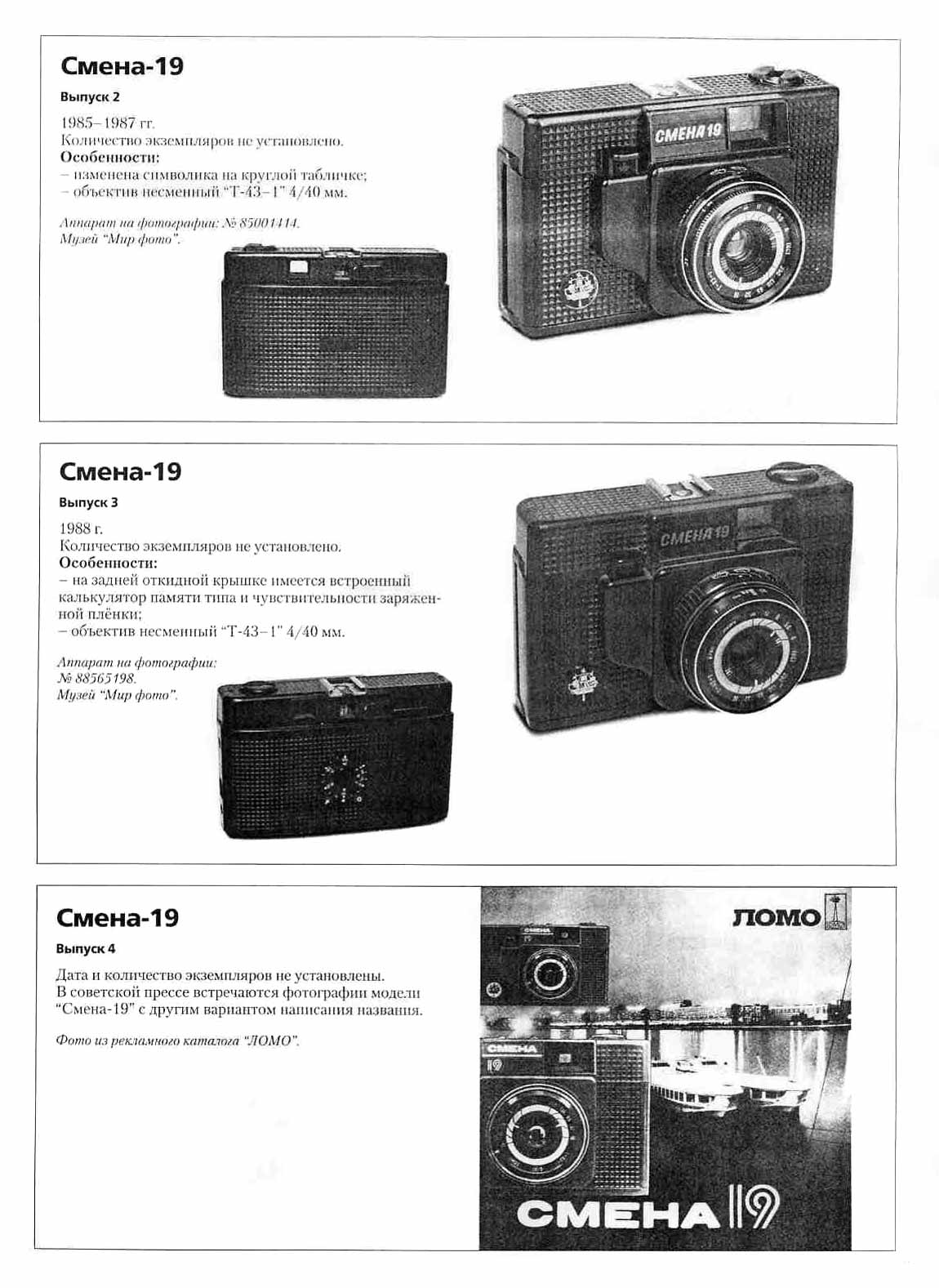 с 1985 по 1988 годы на "ЛОМО". "Смена-19" рестайлинг модели "Смена-Символ".
