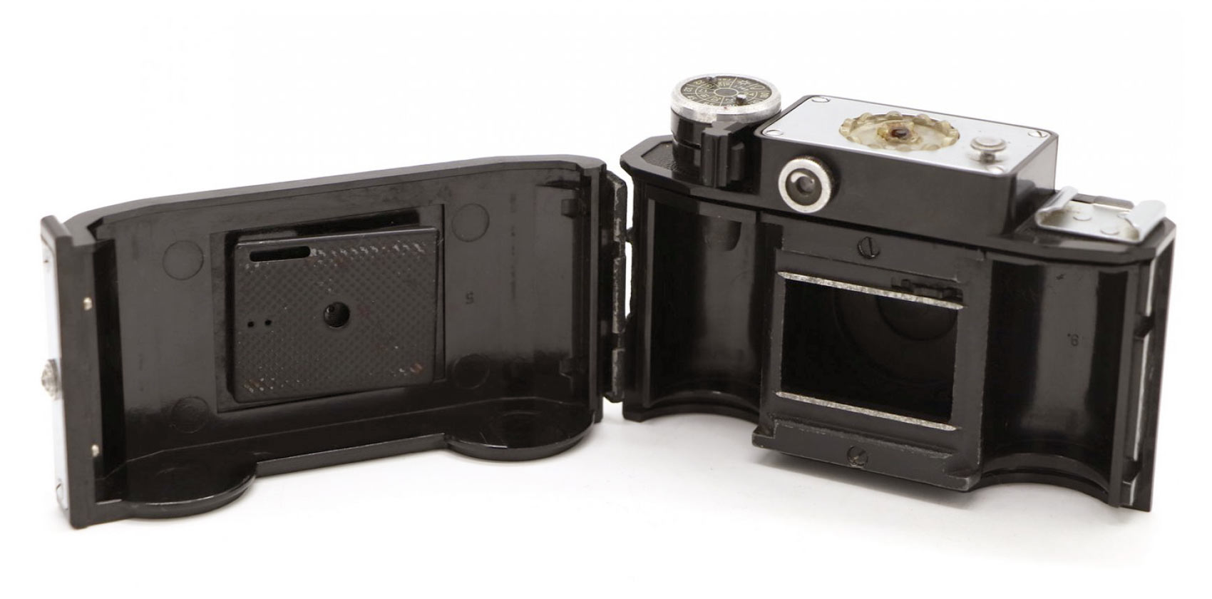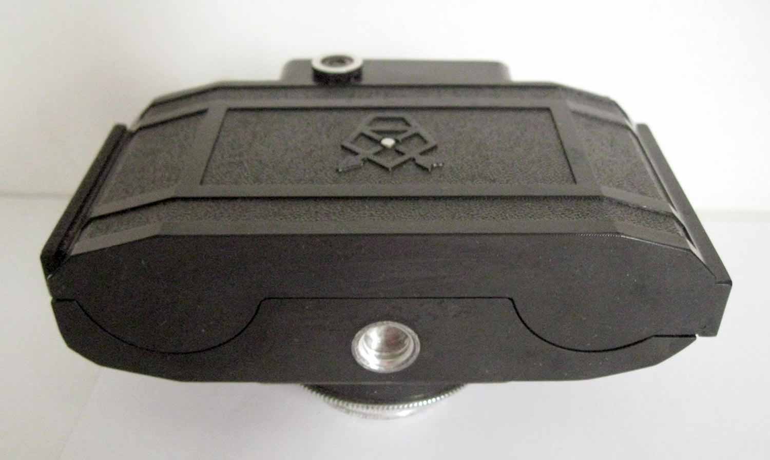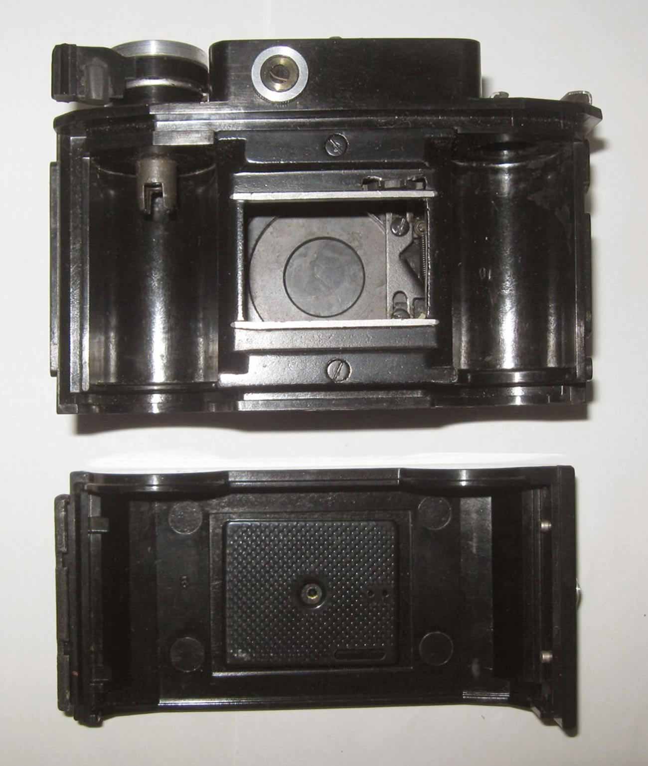 Размер кадра 24х36 мм. Корпус бакелитовый, со съёмной крышкой. Приёмная