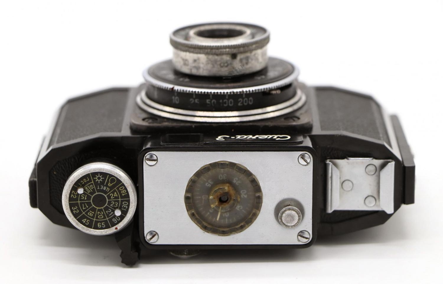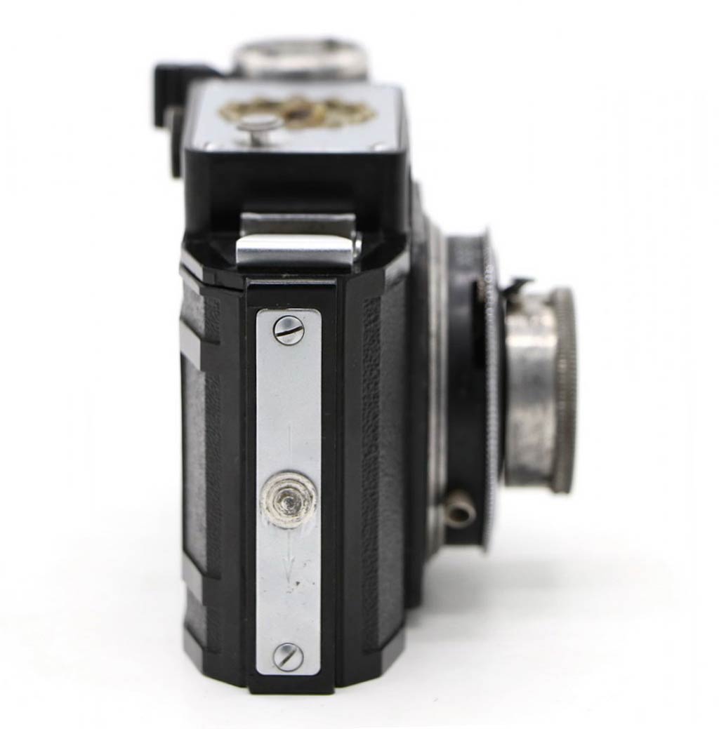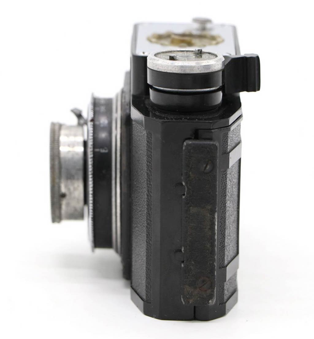 Размер кадра 24х36 мм. Корпус бакелитовый, со съёмной крышкой. Приёмная