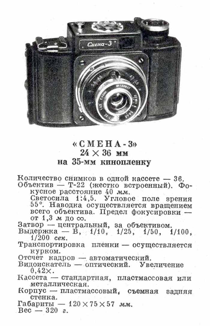 диафрагмы: от 4,5 до 22. Затвор центральный, залинзовый, с выдержками 1/10,