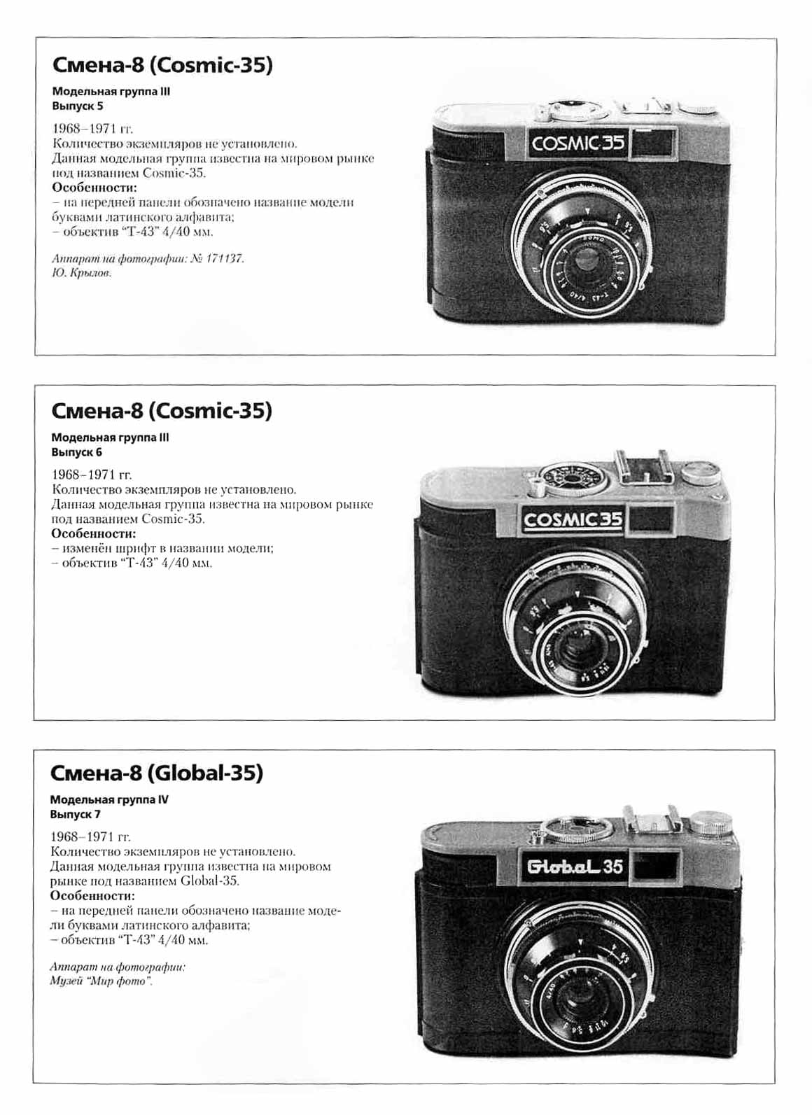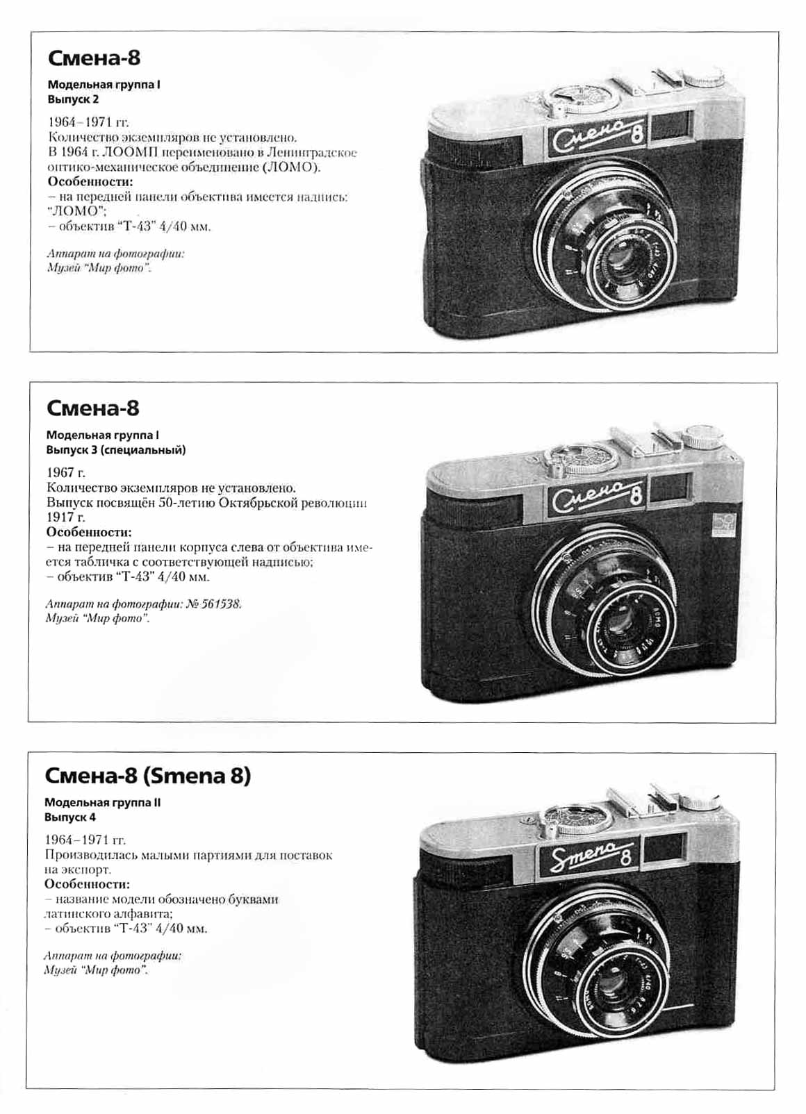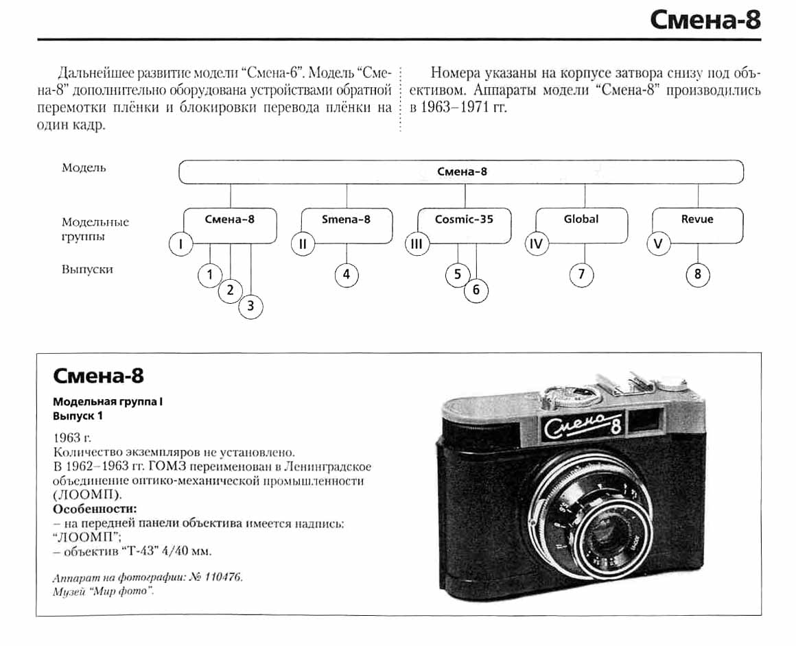 "Смена-7". В разные годы фотоаппарат претерпел несколько модернизаций.