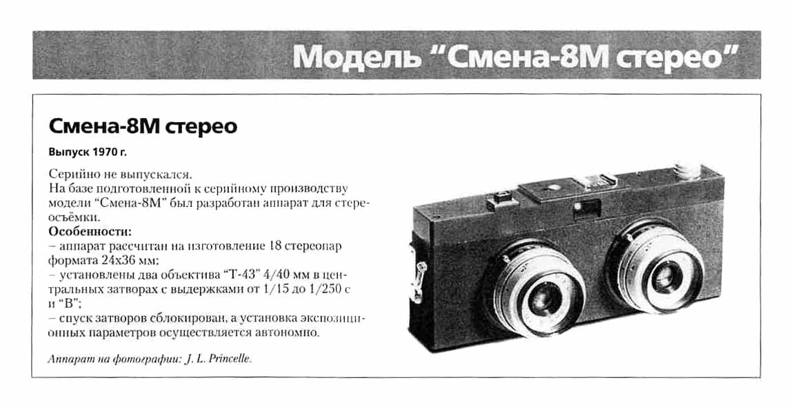 фотоаппарат "Смена-8М стерео" разработан в 1970 году на ЛОМО. Серийно не