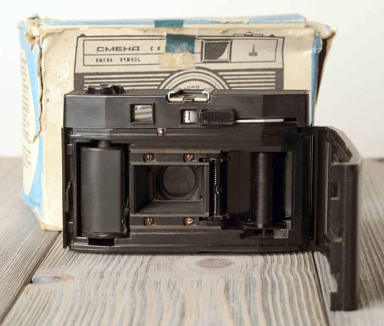 "Смена" отличается оптическим видоискателем, спусковой клавишей на объективе,
