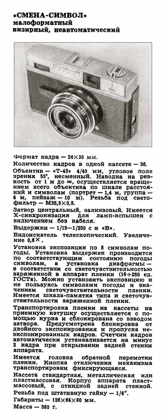 по эксплуатации фотоаппарата "Смена-Символ".