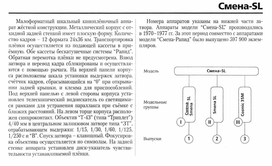 | Фотоаппарат "Смена SL" с 1968 по 1977