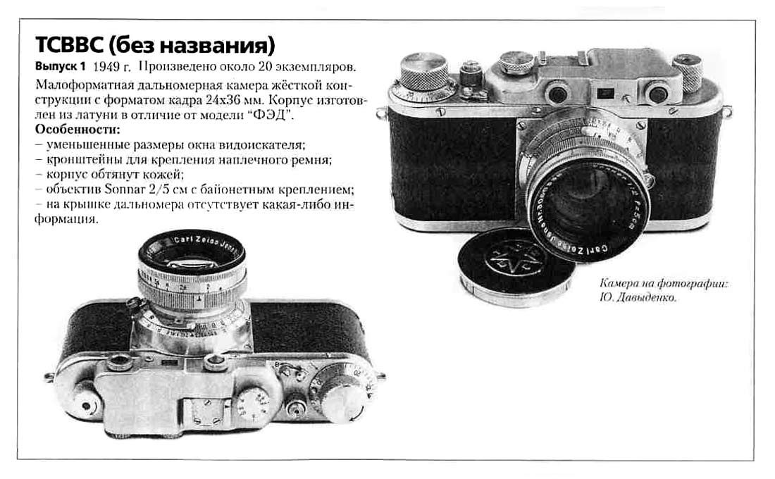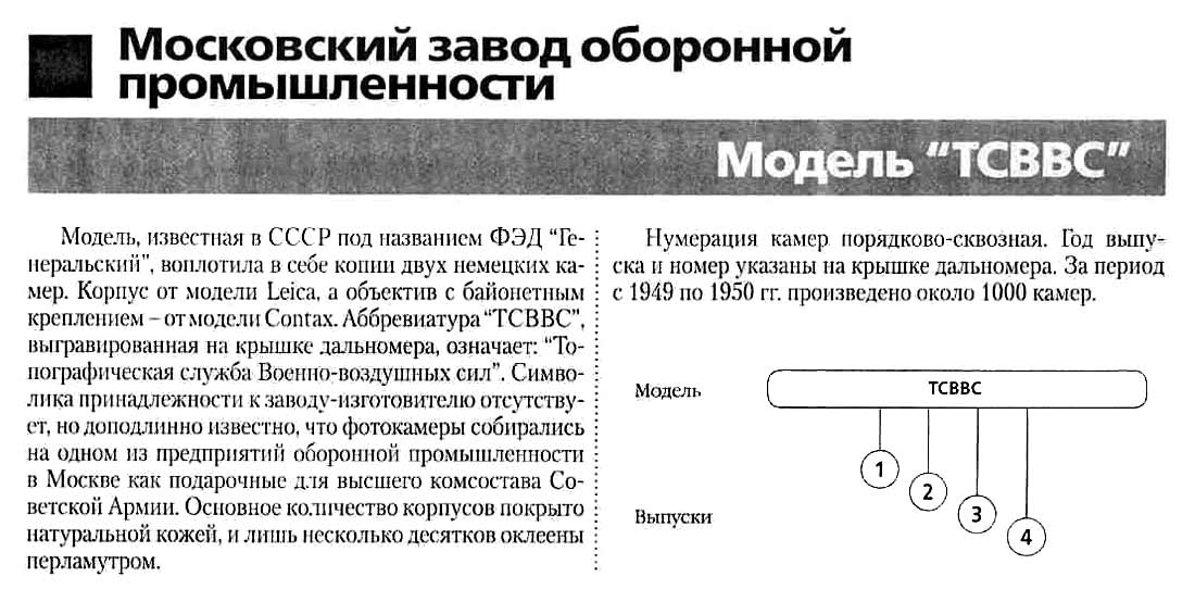 Фотоаппарат "ТСВВС" (ФЭД "Генеральский") производился с 1949 года Московским заводом оборонной промышленности. Рассчитан на 35 мм перфорированную фотоплёнку. В интернете вполне подробно описан.