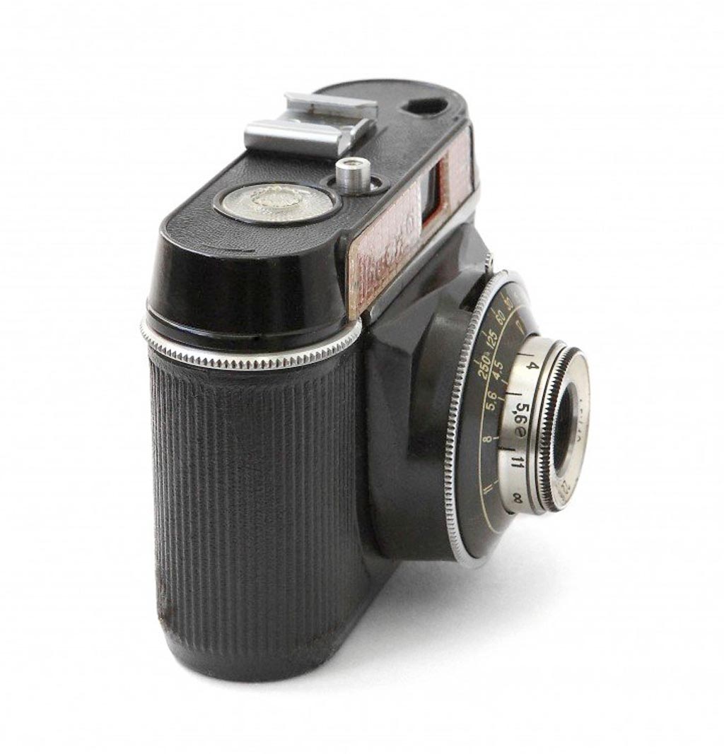 шкальный фотоаппарат для начинающих. Корпус из пластмассы, разделяется