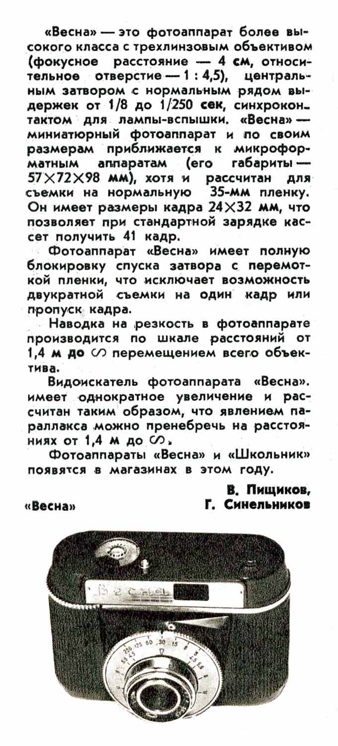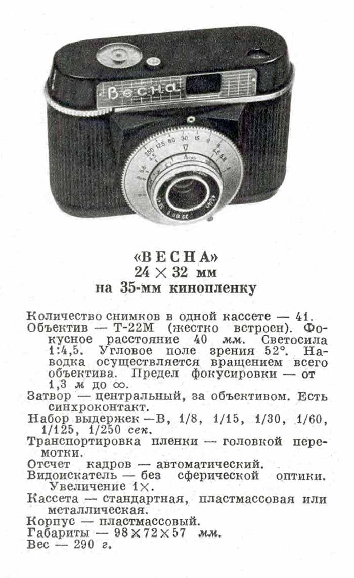 Фотоаппарат "Весна" выпускался с 1961