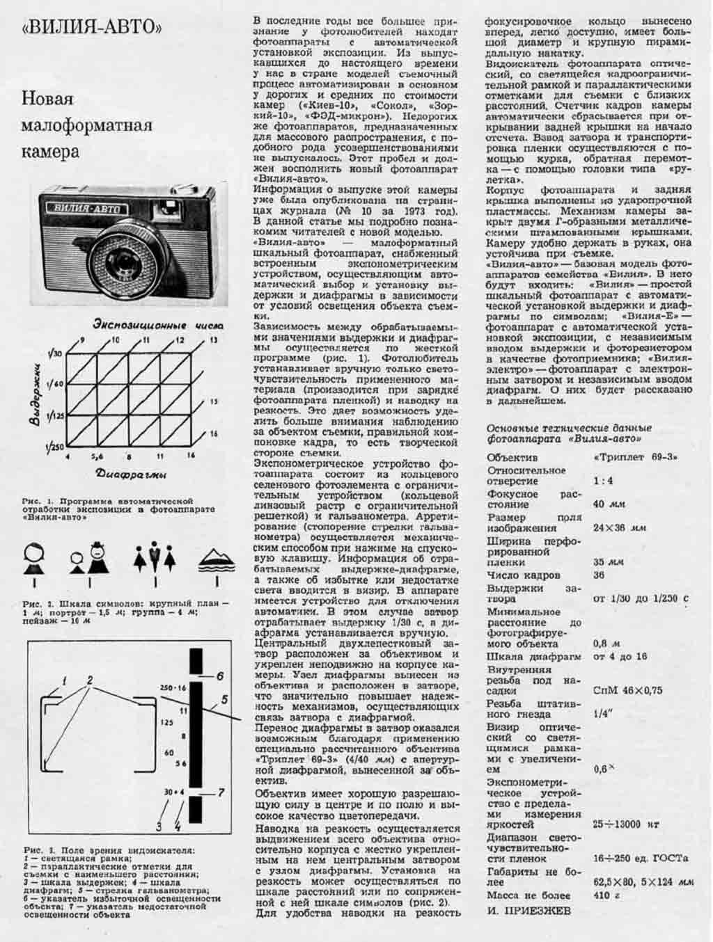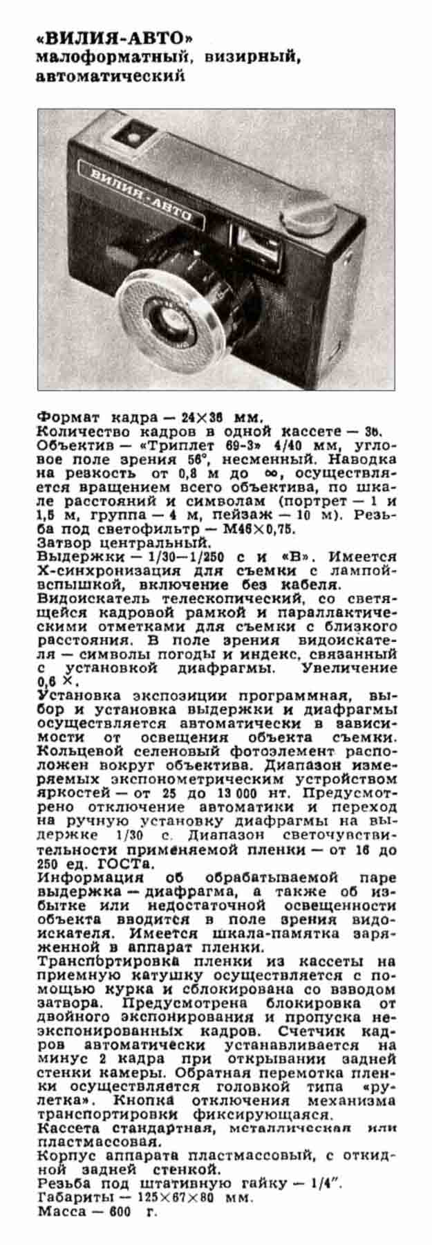 по эксплуатации фотоаппарата "Вилия-Авто".